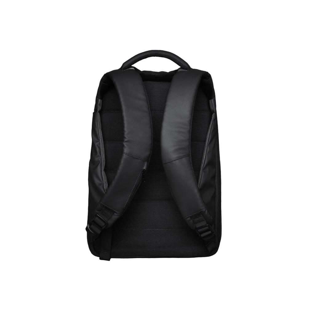 Вместительный рюкзак для путешественников ClickPack Pro из комбинации серого и черного цветов, обладатель премий Good Design Award 2017, Red Dot Design Award 2018, iF Design Award 2018, CMF Design Award, China Red Star Design Award, International Design Excellence Award, Upstyle Award 2018. Сделан из высокопрочного устойчивого к порезам и трению водоотталкивающего материала многослойного плетения из разных типов ткани: нейлон, полиэстер и стекловолокно. Не требует специального ухода. Конструкция достаточно жесткая, не деформируется. Детально продуманная организация отделений позволяет грамотно распределить вес. Самые тяжелые предметы располагаются ближе к спине. Благодаря плотным перегородкам ноутбук и планшет надежно фиксируются и не перемещаются при ходьбе. Специальная анатомическая конструкция и вентилируемая мягкая спинка снижают нагрузку на плечи и спину, вес рюкзака воспринимается на 20-25% легче, чем при использовании стандартных моделей рюкзаков.