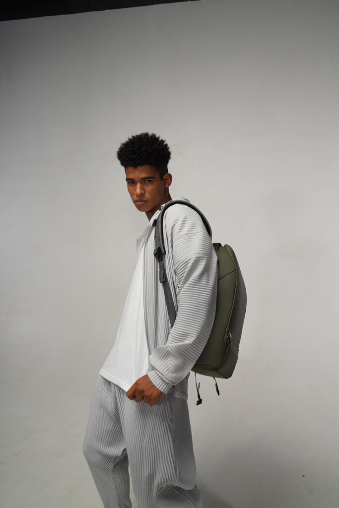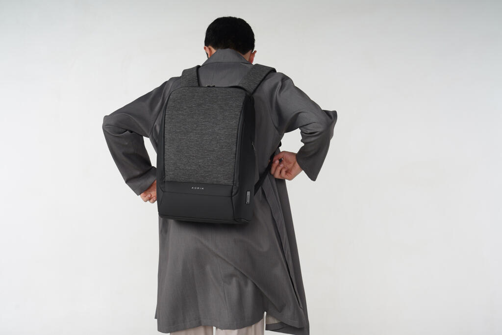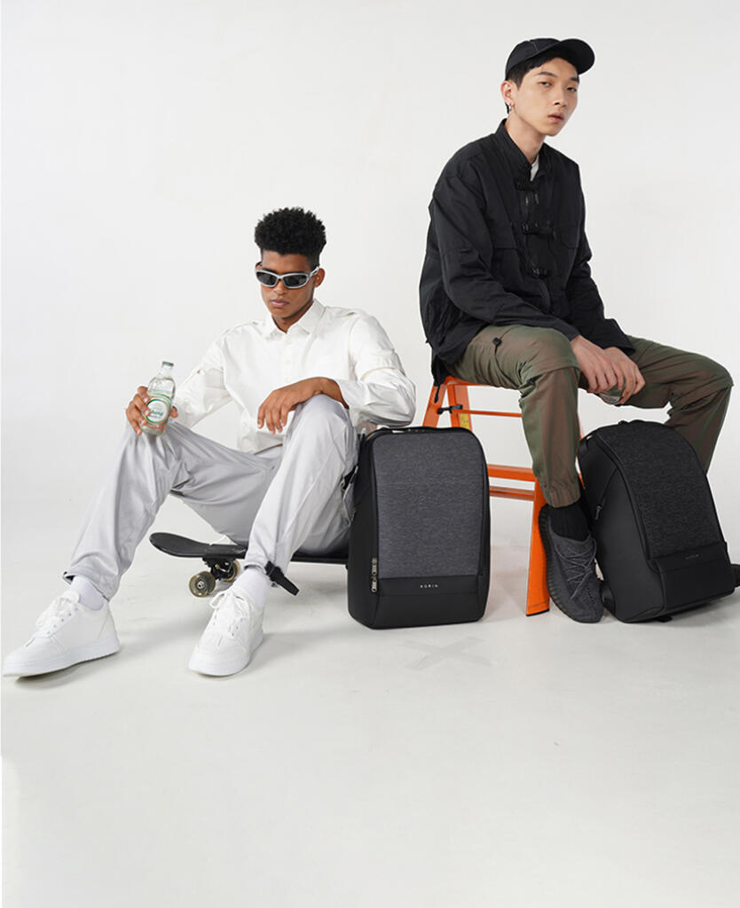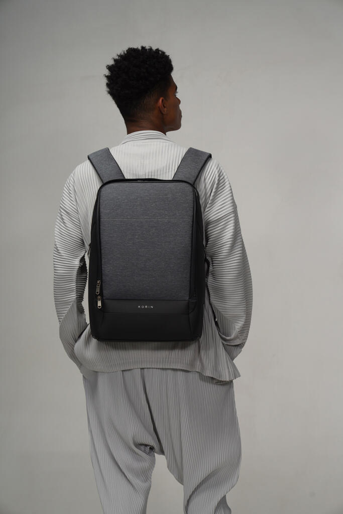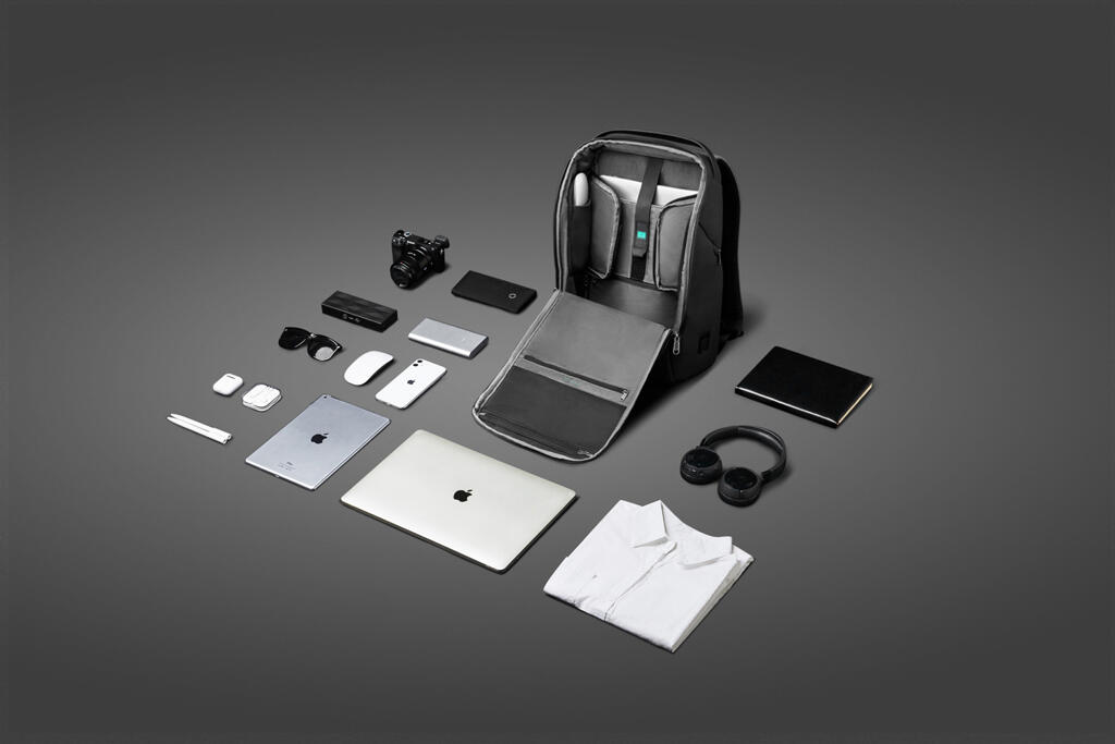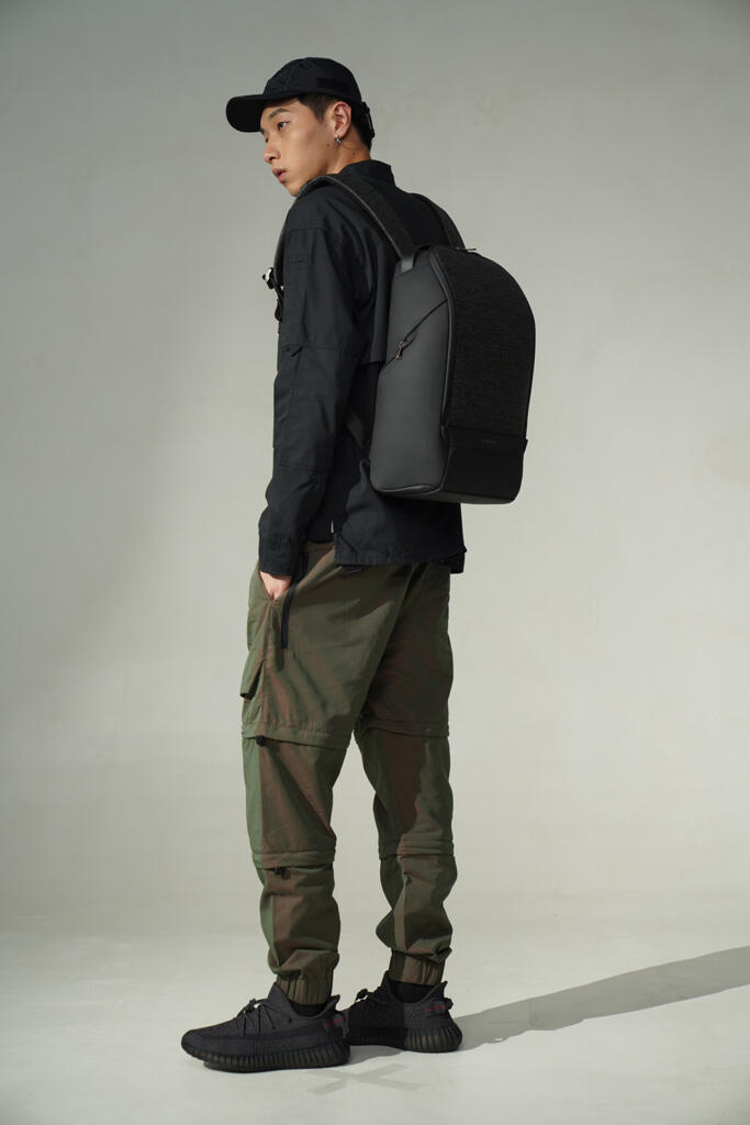 Вместительный водозащищенный рюкзак FlexPack Pro, обладатель премий iF Design Award 2019, Golden Pin Design Award, China Outstanding Industrial Design (CEID) Award, Governor Cup Industrial Design Excellence Award. Сделан из комбинации высокопрочных устойчивого к порезам и трению водоотталкивающих материалов: полиэстера и ткани многослойного плетения разных типов (нейлон, полиэстер и стекловолокно) черного и темно-серого цветов. Не требует специального ухода.