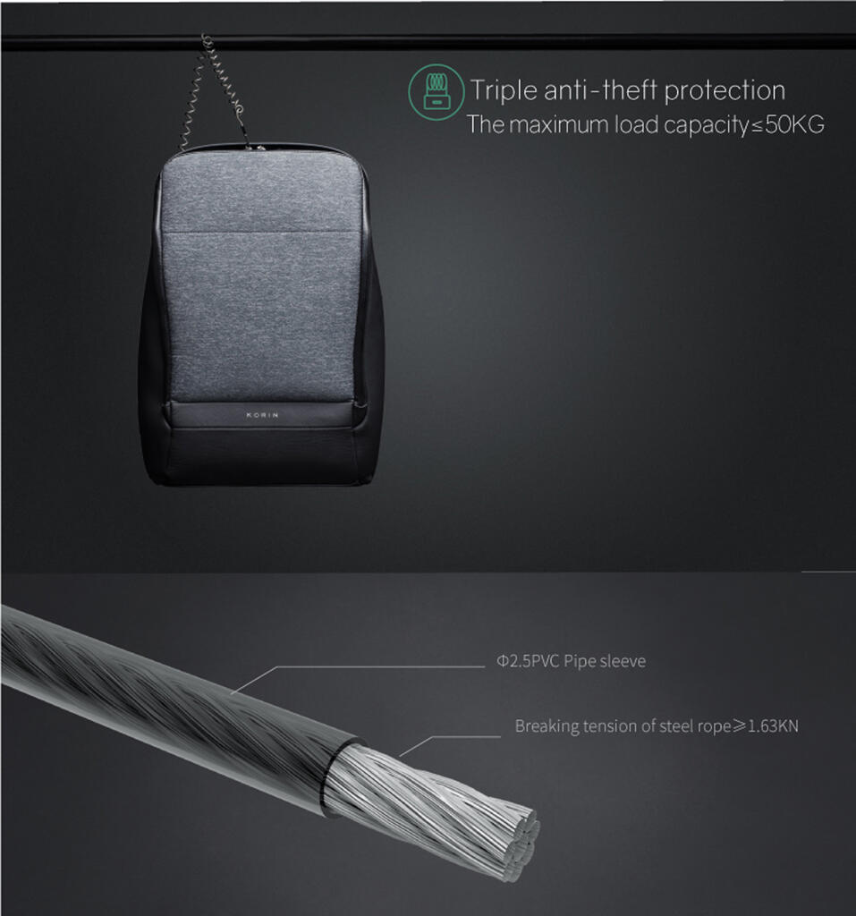 • Рюкзак оснащен стальным тросом, которым можно обхватить неподвижный предмет и затем зафиксировать в кодовом замке.