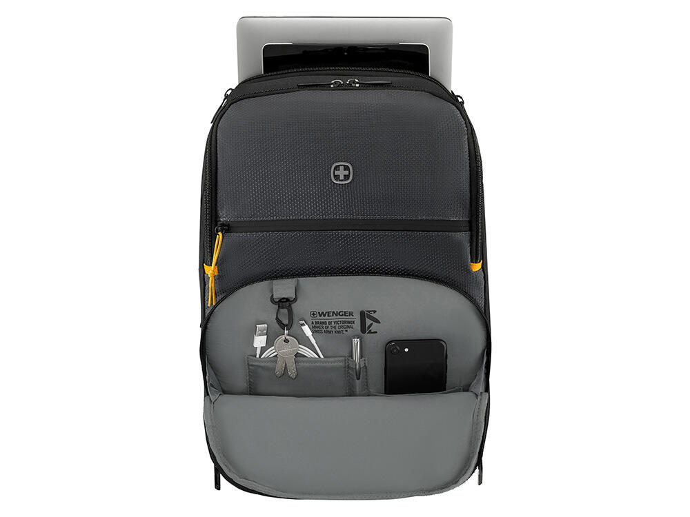 Комфорт обеспечивается продуманной эргономикой. Специальная система вентиляции спины поддерживает оптимальную температуру, а анатомические лямки идеально подстраиваются под вашу фигуру — всё в лучших традициях качества Wenger.