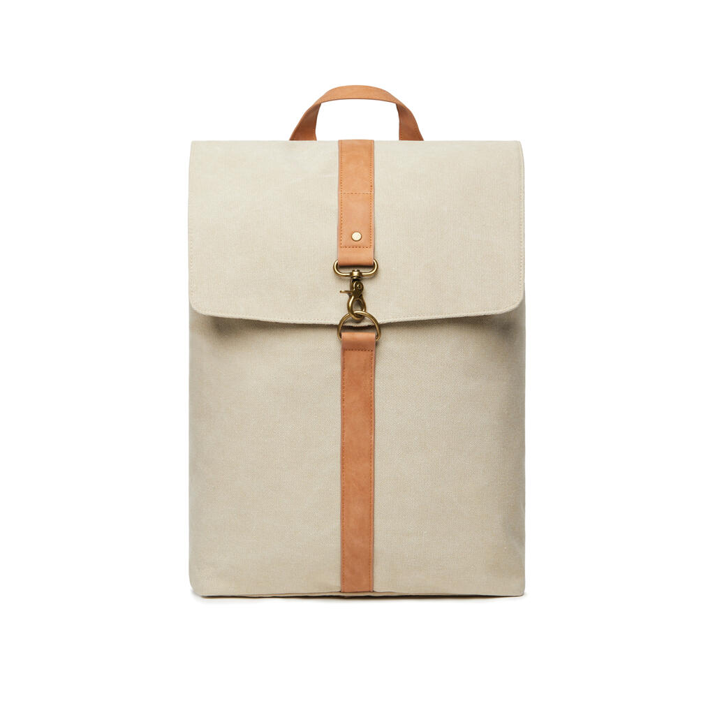 Классический дизайн в новом прочтении — это рюкзак из коллекции Bosler. Он изготовлен из переработанного канваса — прочного материала, полученного из пластиковых бутылок. Минималистичный дизайн делает рюкзак подходящим для рабочих будней, поездок и прогулок. Стильным акцентом выступают контрастная отделка из искусственной кожи и фурнитура из латуни. Внутри два отделения, одно из которых предназначено для ноутбука диаметром до 15’’. Во второе поместятся необходимые в поездке вещи или же рабочие документы. Мягкая, качественная и красивая подкладка — визитная карточка VINGA. Она делает рюкзак еще более стильным, эстетичным и долговечным. Содержание вторичных материалов: 62% от общего веса изделия. Все переработанные материалы соответствуют экостандарту GRS, который гарантирует полный контроль всей цепочки поставок.