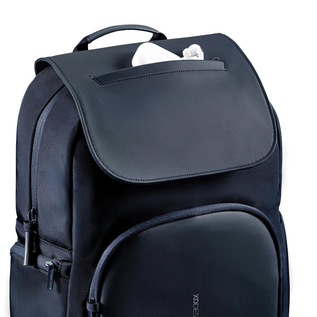 Легкий, стильный, надежный и долговечный — таким получился рюкзак Soft Daypack от XD Design. Это универсальная вещь, которая подходит как для ежедневного использования, так и для поездок. Множество карманов, эргономичная спинка, молнии с поворотным замком — здесь есть все, за что вы полюбили рюкзаки XD Design. Внутри два отделения, одно из которых предназначено для ноутбука диагональю до 16’’. Мягкая подкладка и фиксирующий ремень защитят технику от повреждений. На подкладке есть кармашки — в них можно положить мышку и зарядное устройство или внешний аккумулятор. В основное отделение поместятся ежедневники, рабочие документы — или вещи, если вы собрались в поездку. Закрывается рюкзак на молнию и специальный замок от немецкой компании Fidlock. Его не получится открыть незаметно, а молнии оснащены поворотными замочками с надежным фиксатором. Снаружи также разместилось несколько карманов. Один из них — на клапане: он небольшой и подходит для наушников или монет. На внешней стенке рюкзака за надежной молнией скрываются сразу три кармана. По бокам расположилось еще два кармашка — для нужных под рукой мелочей и бутылки с водой. Сзади есть карман, который идеально подходит для кошелька или банковских карт: RFID-защита не позволит считать с них данные. Рюкзак оснащен мягкими плечевыми ремнями и удобной багажной лямкой. Он изготовлен из текстурированного полиуретана и переработанных пластиковых бутылок. Благодаря специальному покрытию его поверхность приобрела водоотталкивающие свойства. Ассортимент цветов и компактные размеры делают рюкзак Soft Daypack отличным подарком и для мужчин, и для женщин. Сертификат AWARE™ подтверждает подлинное использование переработанных материалов.