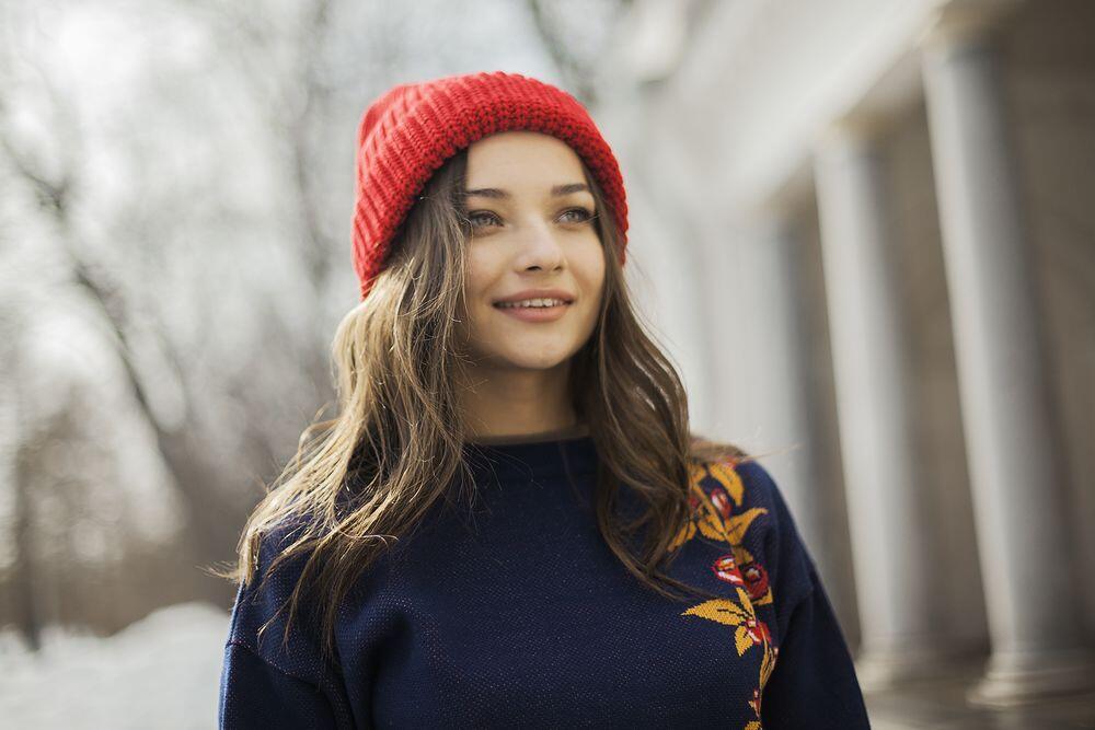 Объемная шапка из толстой пряжи.
