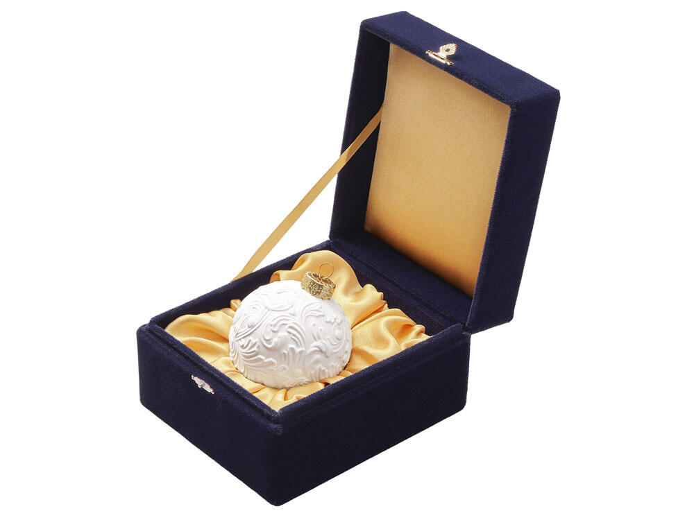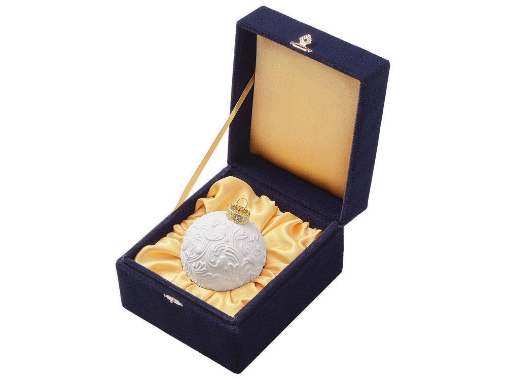 Фарфоровый шар с росписью в технике бисквит. Игрушка ручной работы. Матовая, бархатистая поверхность и пастельные тона создают утонченный образ старинного зимнего праздника. Это воплощение изящества и ностальгии.
