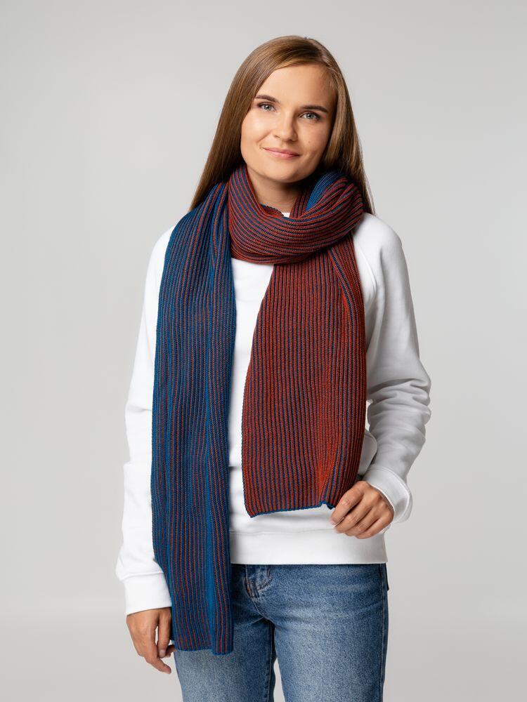 Двухсторонний шарф из полушерстяной пряжи позволяет играть со стилем верхней одежды, не меняя при этом аксессуара, — просто выбирайте цвет настроения или комбинируйте два в одном! Однослойный шарф рельефной вязки. Поставляется в пакете с липким краем.