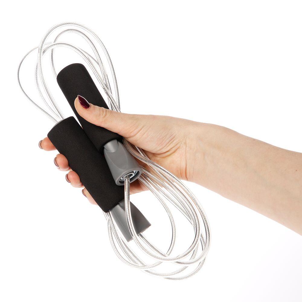 Благодаря мягкому неопреновому покрытию ручки не скользят в ладонях. Трос с сердцевиной из металлического кабеля с гладкой оплеткой из ПВХ не запутывается при скоростном кручении, обеспечивая высокий контроль и управляемость.