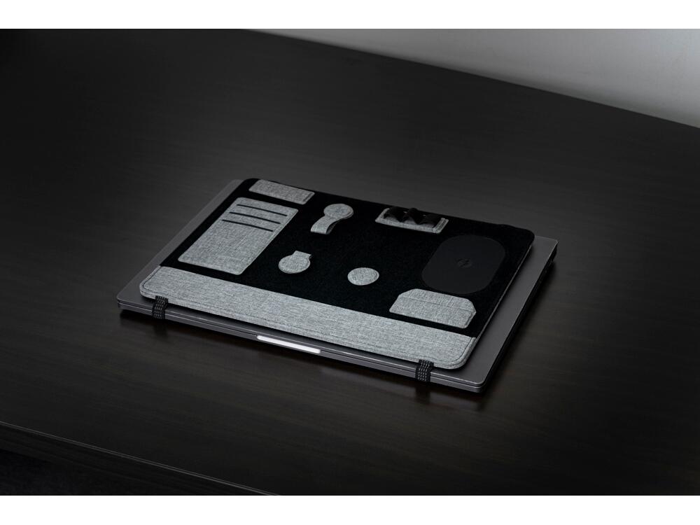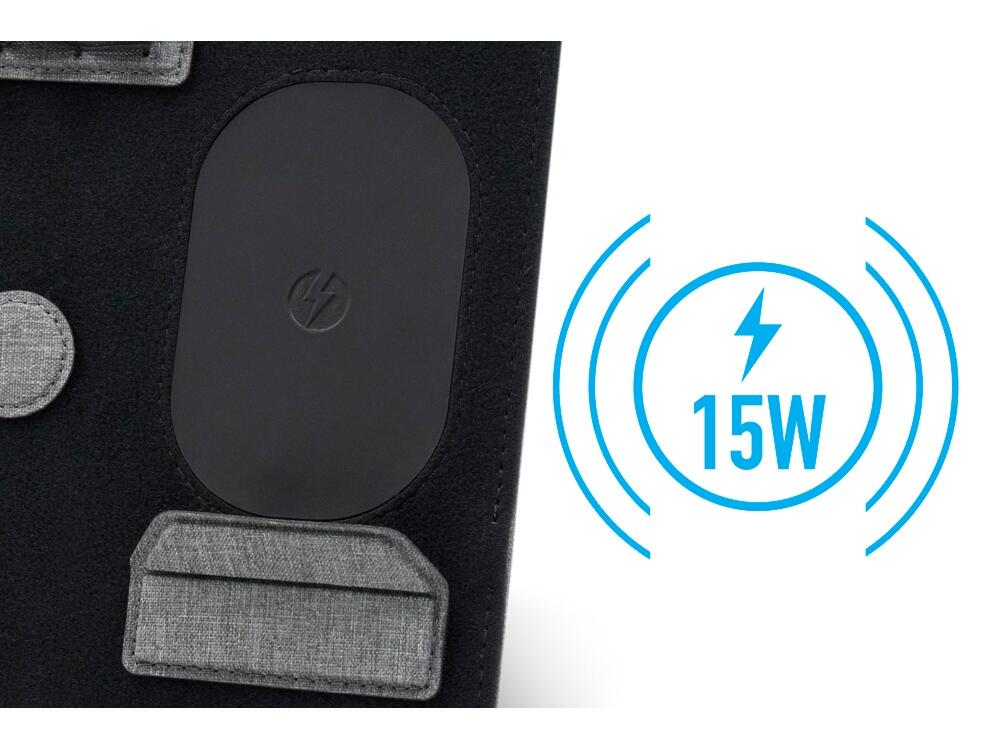 Помимо подставки для ноутбука, этот настольный органайзер оснащен подставкой для телефона с быстрой беспроводной зарядкой мощностью 15 Вт (регулируемой), планшетом для обмена, двумя магнитными док-станциями, держателем для ручек, держателем для карт, зажимом для кабеля и подставкой для телефона. Поддерживать порядок на рабочем столе еще никогда не было так просто!