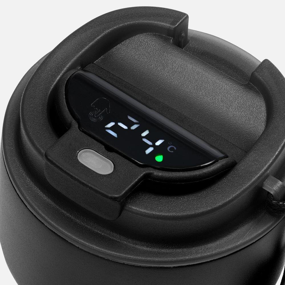 neoMug показывает температуру напитка на сенсорном ЖК-дисплее — точные данные собирает встроенный в крышку датчик.