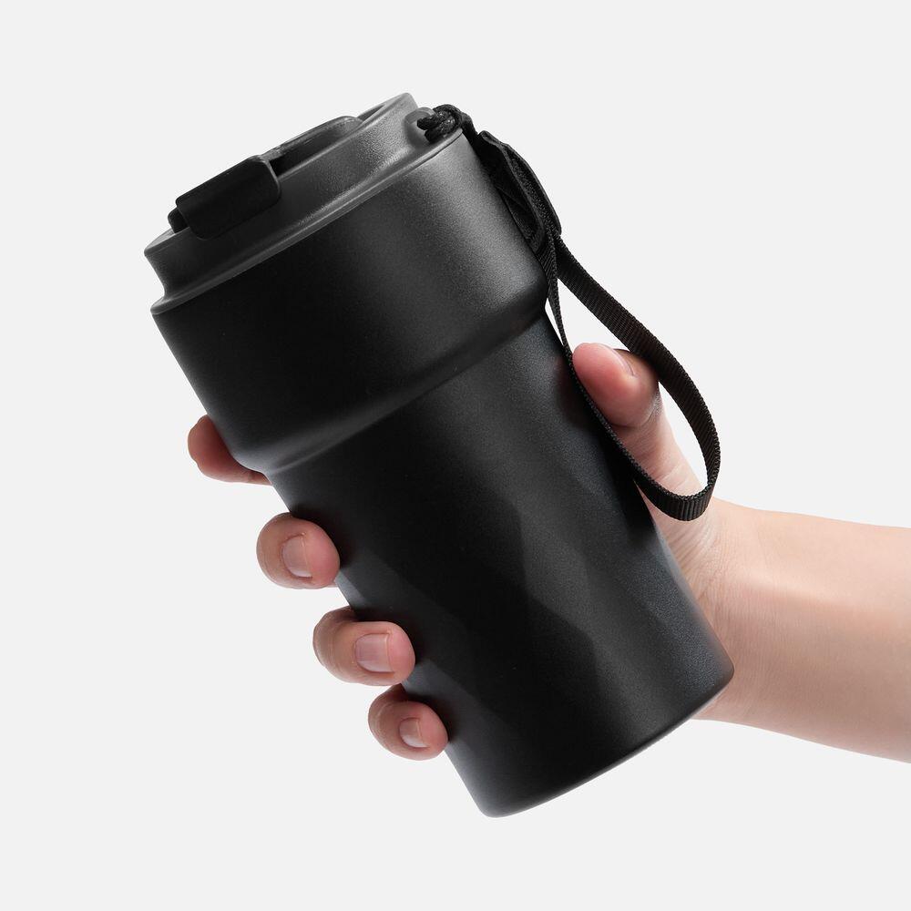 Смарт-термостакан в металлическом корпусе с легким рельефом.