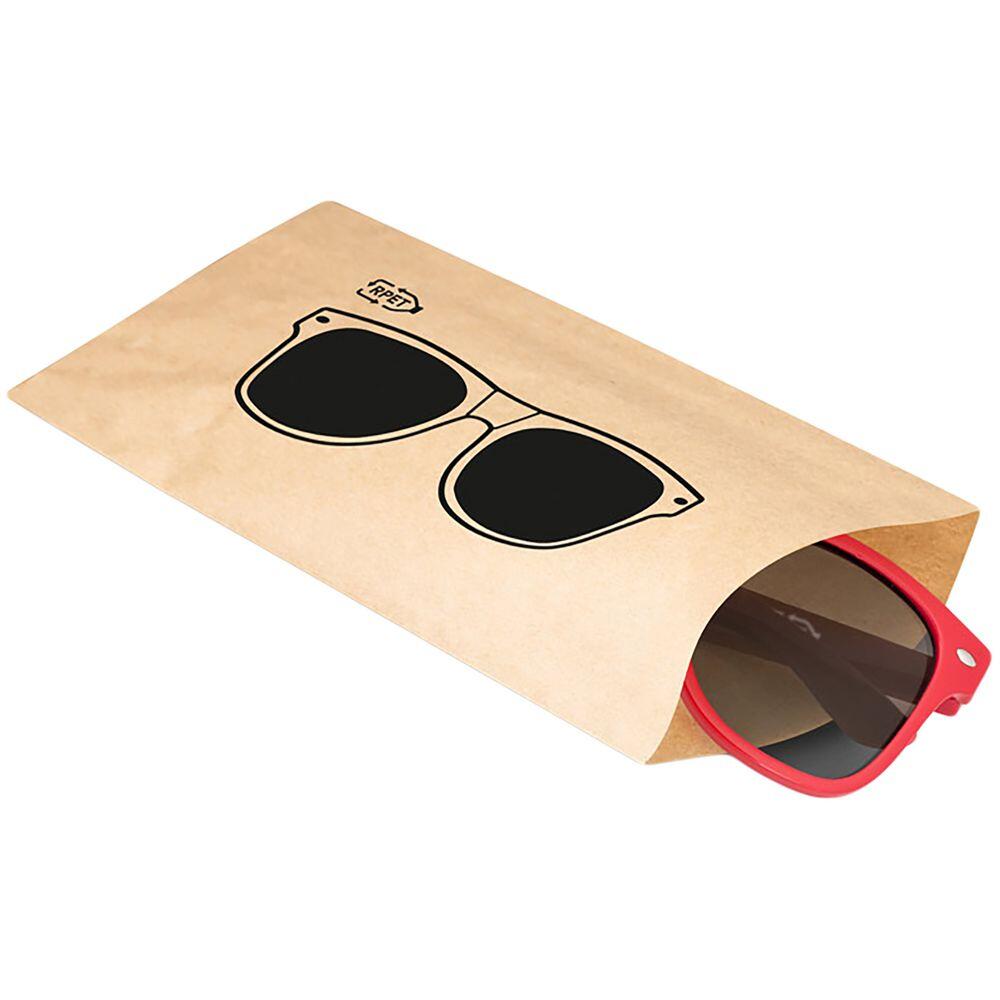 Стильные солнцезащитные очки — необходимый аксессуар в солнечный день! Защита от ультрафиолетового излучения UV400. Линзы 3 категории затемнения идеально подходят для пляжного отдыха, так как пропускают только 8-18% света. Оправа изготовлена из переработанного пластика rPET. Поставляются в бумажном пакете.