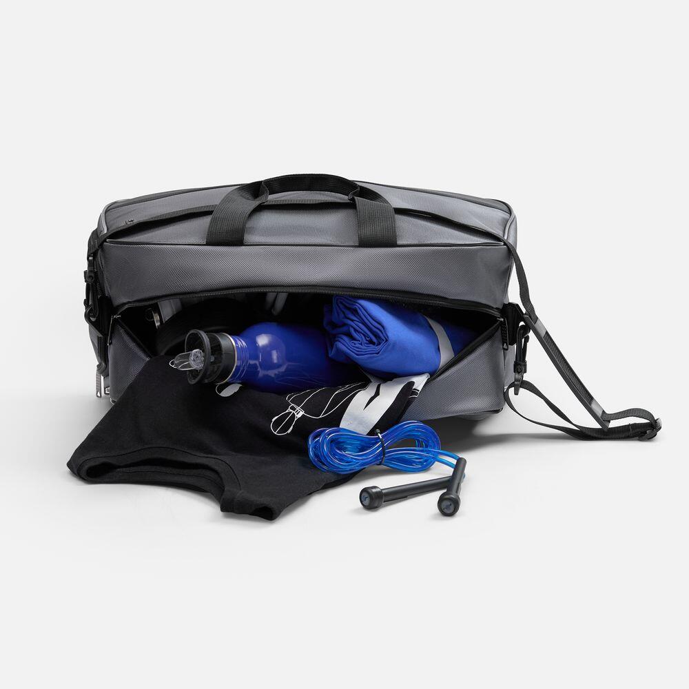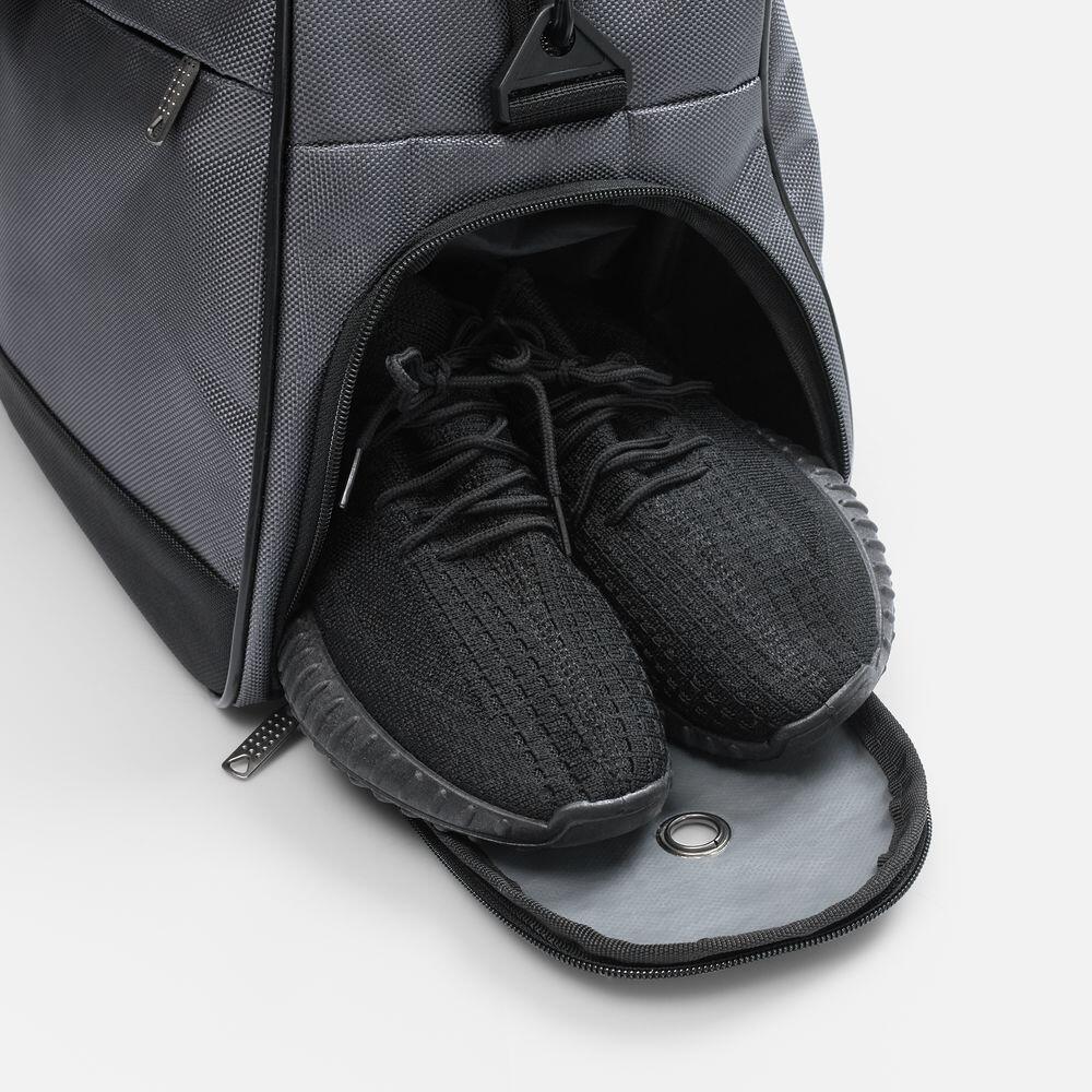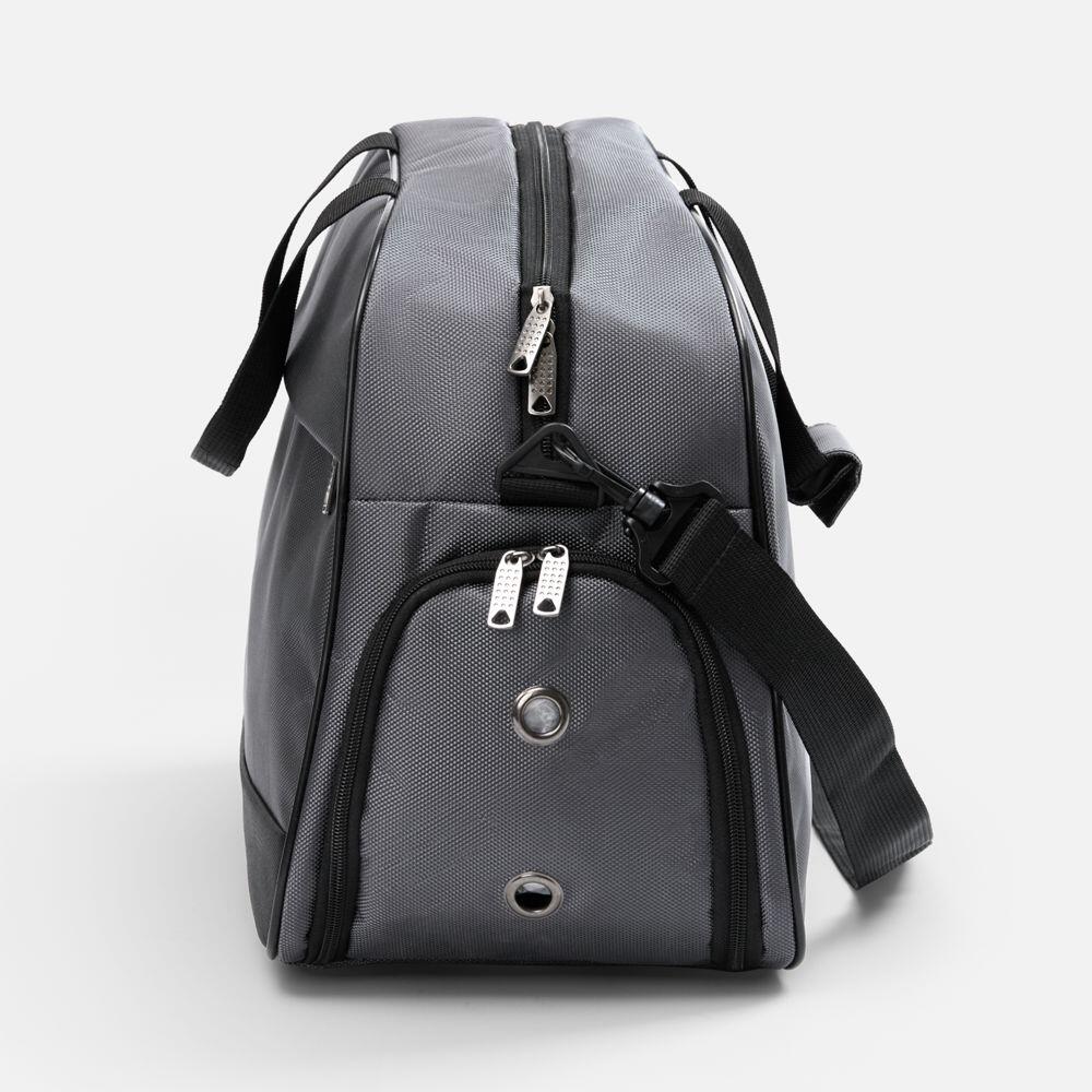 Усиленное дно с рифлеными ножками защищает сумку от износа, а боковое отделение с вентиляцией идеально подходит для обуви. Сумка оснащена удобными ручками и регулируемым плечевым ремнем, что обеспечит комфорт при переноске.