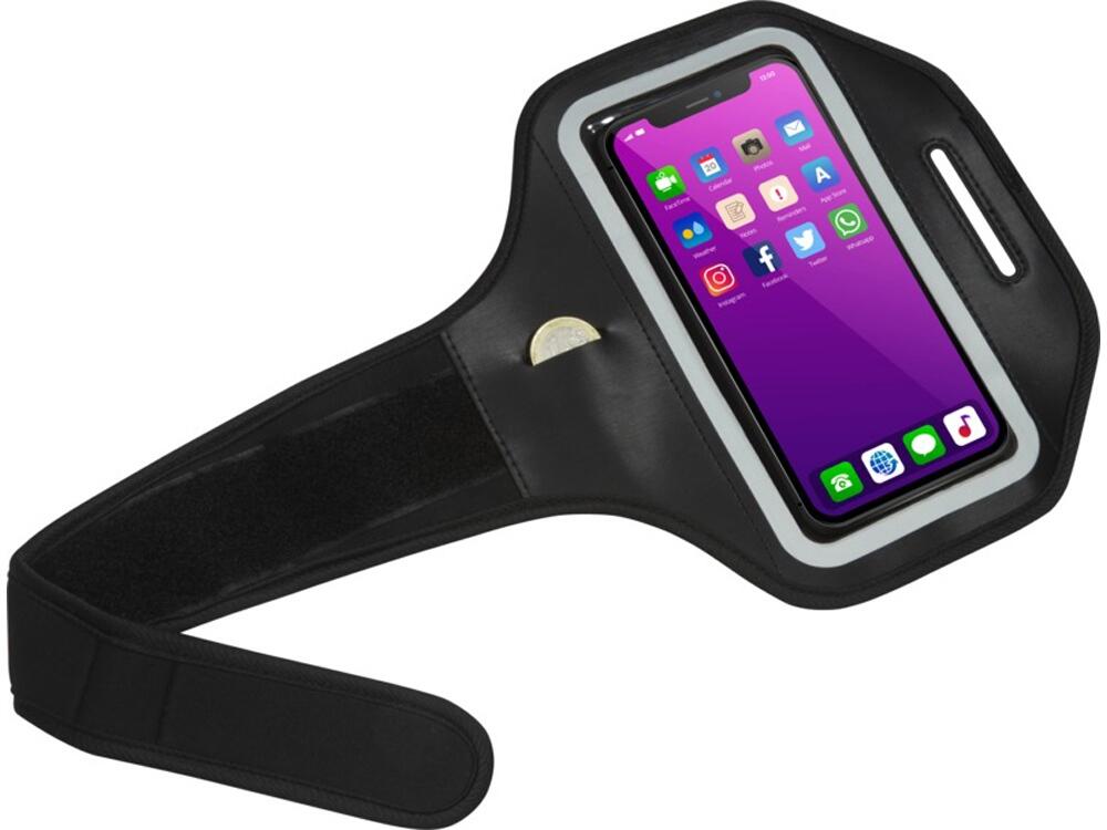 Регулируемый чехол на липучке с прозрачным окном. Для эксплуатации и защиты смартфона во время бега или любой другой деятельности. Подходит для многих смартфонов большего размера, таких как iPhone X, 8, 7, 6, 5 и/или Galaxy Note S9, S8, S7, S6. Размер кармана для телефона 8 х 18 см. Прозрачное окошко имеет отражающую полосу для улучшения отображения в темноте. Ремешок на липучке можно отрегулировать под разные размеры. Имеет дополнительный карман для хранения ключей или монет. Неопрен, ПВХ.