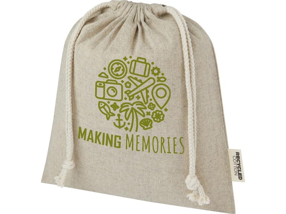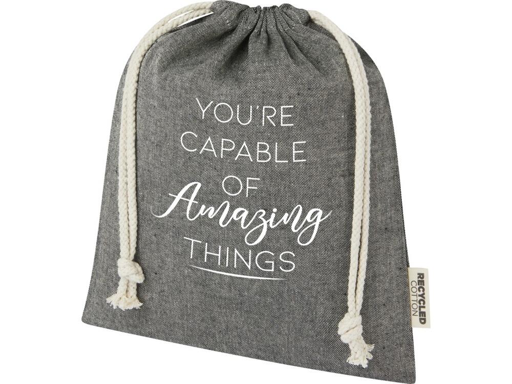 Подарочная сумка из хлопка, переработанного по стандарту GRS, с хлопковым шнурком для затягивания. Идеально подходит для подарков или хранения предметов. Размер: 25 x 30 см.