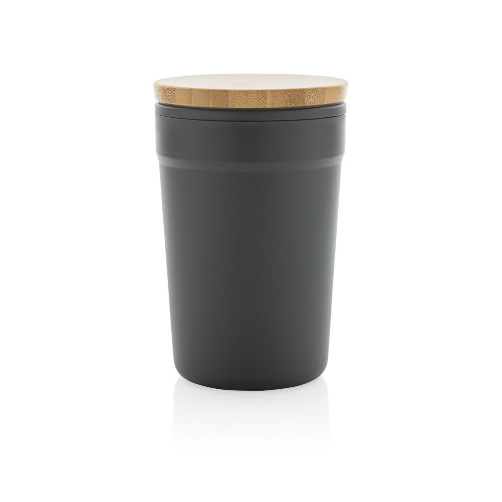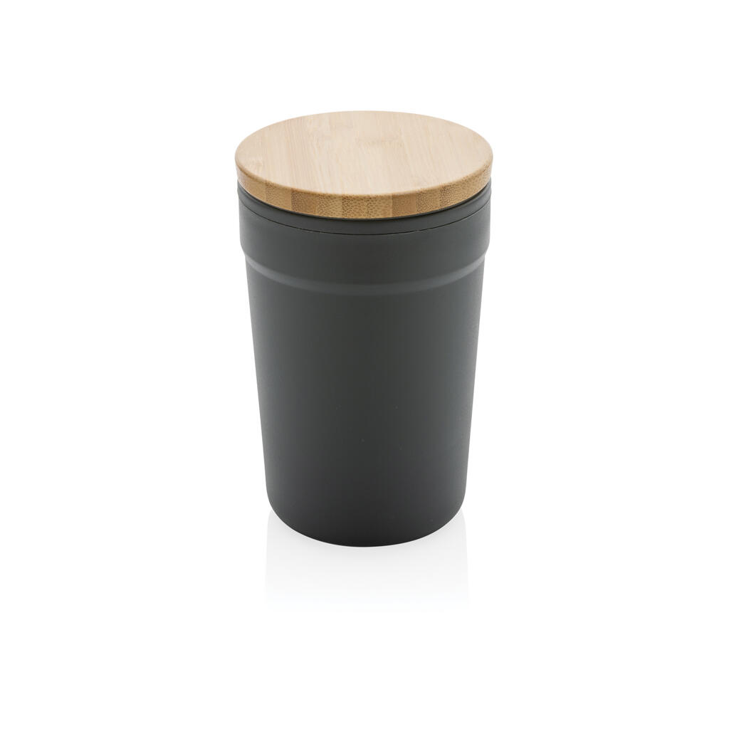 Стакан из переработанного полипропилена GRS с бамбуковой крышкой 300 мл