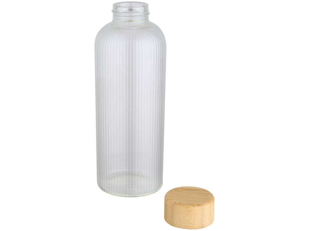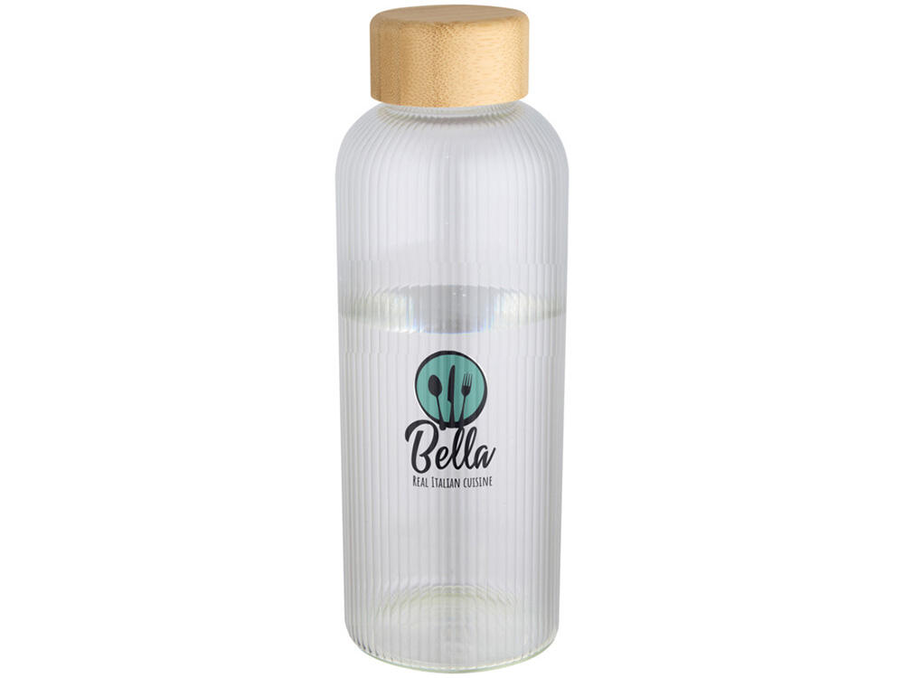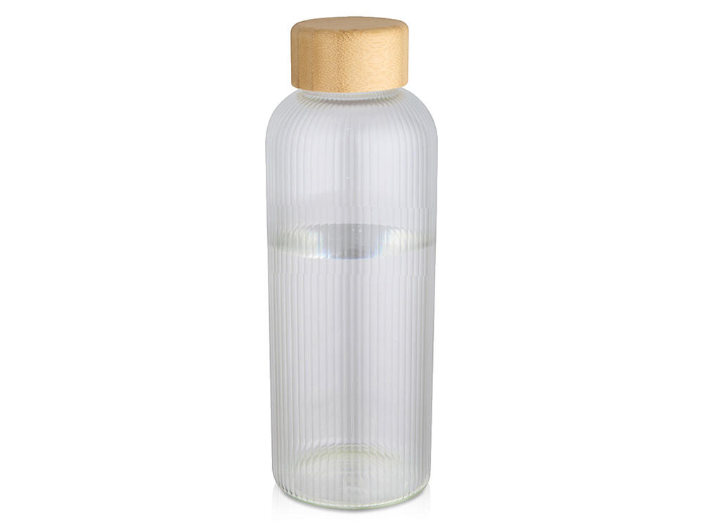 Бутылка из боросиликатного стекла с бамбуковой крышкой. Бутылка имеет уникальный ребристый дизайн внутри и гладкую внешнюю поверхность, идеально подходящую для печати логотипа. Используемый бамбук выращивается в экологически чистых условиях с соблюдением принципов экологической и социальной ответственности. Поставляется в подарочной коробке из переработанного картона. Объем: 650 мл. 90% Боросиликатное стекло, 10% Бамбуковое дерево. упаковка FSC Mix 100% P5 CU-COC-877277. FSC Mix Credit N5 CU-COC-877277.