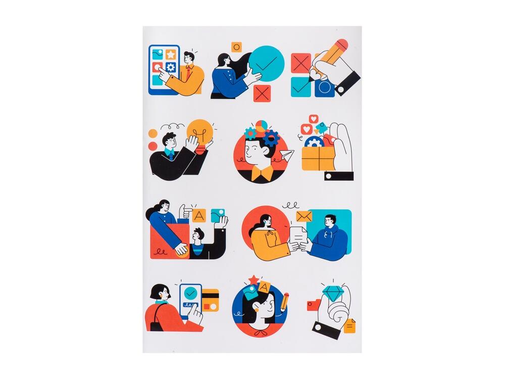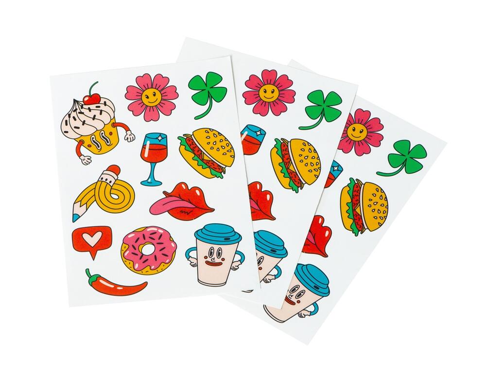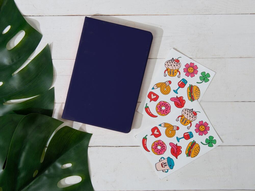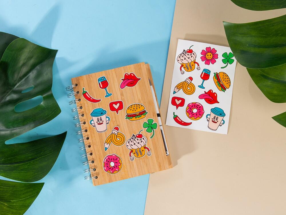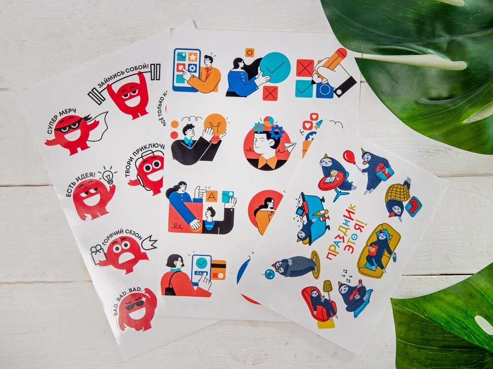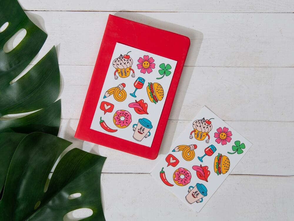 Лист с наклейками формата А5, которые можно использовать для украшения ноутбуков, планшетов, телефонов, дневников, скетчбуков и многого другого.