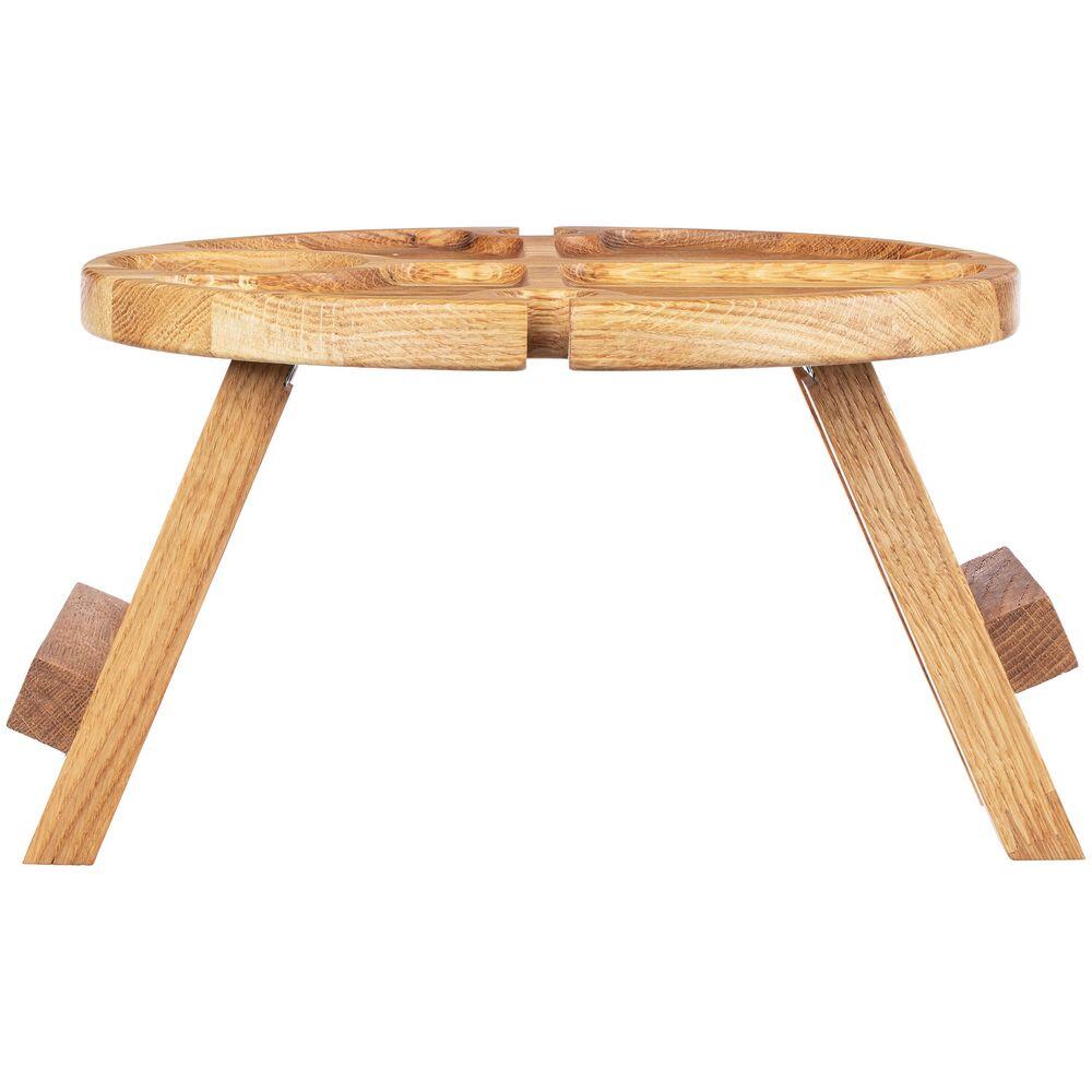 С винным столиком Taffon все необходимое для идеального вечера всегда будет под рукой! Удобные углубления для двух бокалов и специальное место для бутылки просто созданы для безмятежного наслаждения любимыми напитками. Продуманные отсеки для изысканных закусок позволят добавить изюминку любому ужину и превратить его в настоящий гастрономический праздник! Ножки стола легко складываются — мобильность и удобство в путешествиях.Поставляется без индивидуальной упаковки.