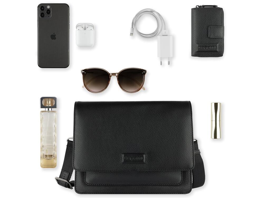 ЖЕНСКАЯ СУМКА ЧЕРЕЗ ПЛЕЧО ELSA Готовы к поездке в выходные? Мы раскрасим вашу ленту в соцсетях невероятной коллекцией ELSA. Коллекция ELSA предлагает широкий ассортимент аксессуаров и сумок разных форм и размеров, от элегантных кошельков и изящных наплечных сумочек для выхода в свет до вместительных шопперов и дорожных сумок для путешествий. Все модели серии изготовлены из высококачественной мягкой воловьей кожи и представлены в классическом черном, белом и бежевом цветах. Элегантное тиснение логотипа Bugatti придает очарование каждой модели. Коллекция выделяется продуманной функциональной организацией внутреннего пространства и защитой от радиочастотной идентификации RFID. Кошельки и ключницы оснащены специальным защитным слоем из фольги, который предотвращает незаконное сканирование вашей личной информации и препятствует списанию денежных средств с банковских карт. Какой бы аксессуар или сумку вы бы ни предпочли, будьте уверены, что с коллекцией ELSA вы точно окажетесь в центре внимания. СВОЙСТВА Функциональная организация: основное отделение на магнитной кнопке с карманом на молнии и открытым карманом, передний открытый карман, задний карман на молнии, съемный регулируемый плечевой ремень (до 130 см). Материал: воловья кожа/полиэстер Размер: 25 х 8,5 х 20 см Вес: 0,54 кг