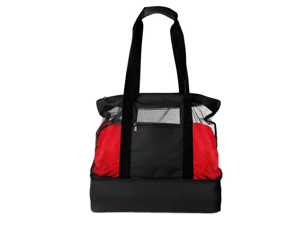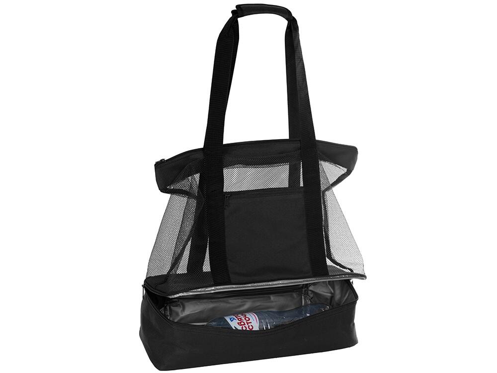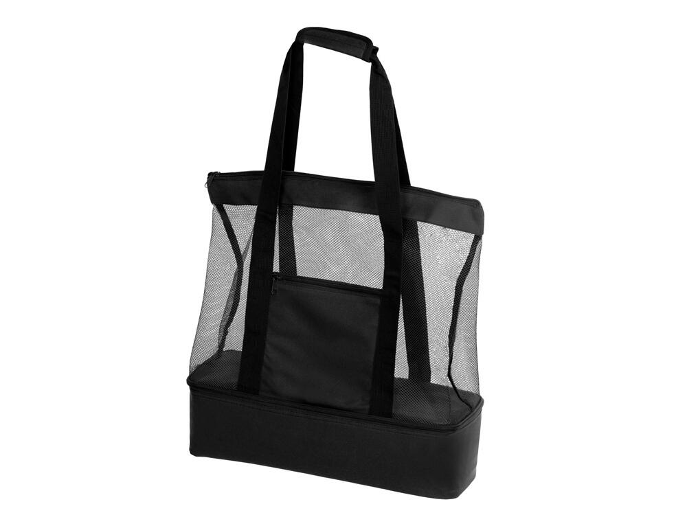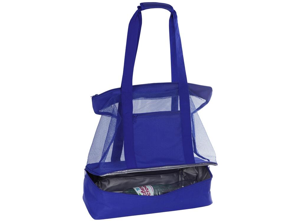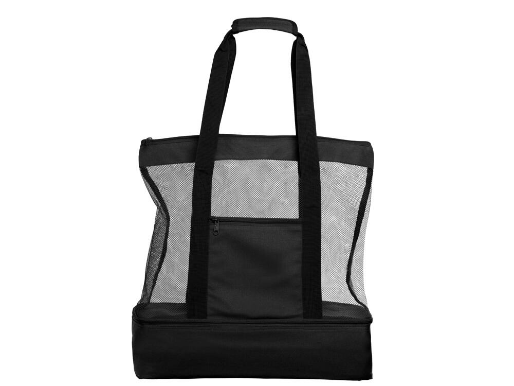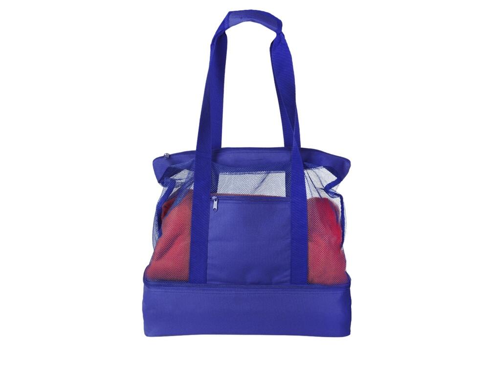Вместительная пляжная сумка с отделением -холодильником внизу. Удобно брать холодные напитки на пляж. Сетчатая ткань способствует просыханию пляжных вещей. Комфортные длинные ручки фиксируются вместе застежкой липучкой. Все отделения и наружный карман для мелочей застегиваются на молнию. Благодаря большой вместительности сумку можно использовать для шоппинга.