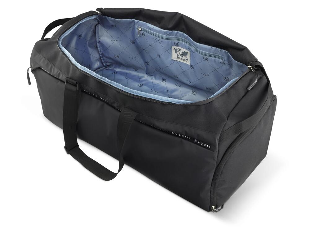 Функциональная организация: основное отделение на молнии с внутренним карманом на молнии, боковое отделение для обуви на молнии, передний карман на молнии, ремень для крепления к телескопической ручке чемодана, 2 боковые ручки, 2 регулируемые ручки, которые можно использовать как плечевые ремни (до 75 см).