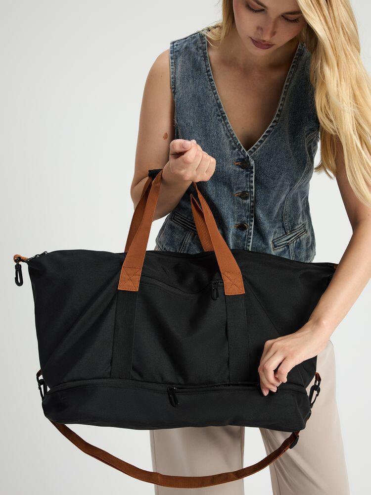 Дорожная сумка Incluso — надежный спутник в краткосрочной поездке, будь то командировка или выезд на уикенд. Также она с легкостью станет незаменима для спортзала. Изготовлена из прочного материала, оснащена удобными ручками и регулируемым плечевым ремнем, что обеспечивает комфорт при переноске. В сумке предусмотрено специальное отделение для обуви.