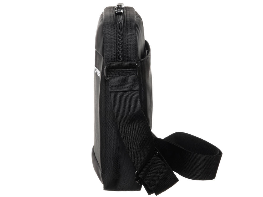 Сумка выполнена в чёрном цвете, оснащена двумя внешними карманами на молнии, а также регулируемым наплечным ремнем, который позволяет подобрать оптимальную высоту для носки в соответствии с индивидуальными предпочтениями. В основном отделении имеется мягкий карман для планшета и сетчатый карман на молнии.