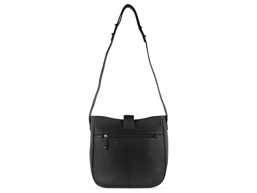 Функциональная организация: основное отделение на молнии с карманом на молнии и 2 открытыми карманами, задний карман на молнии, регулируемый плечевой ремень (до 92 см).