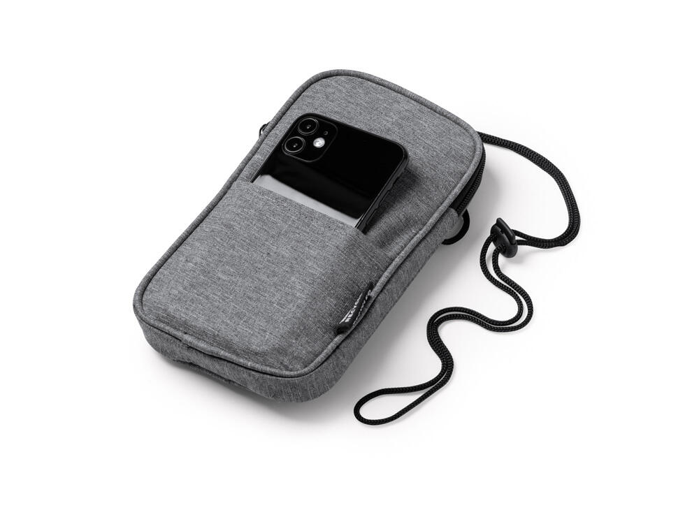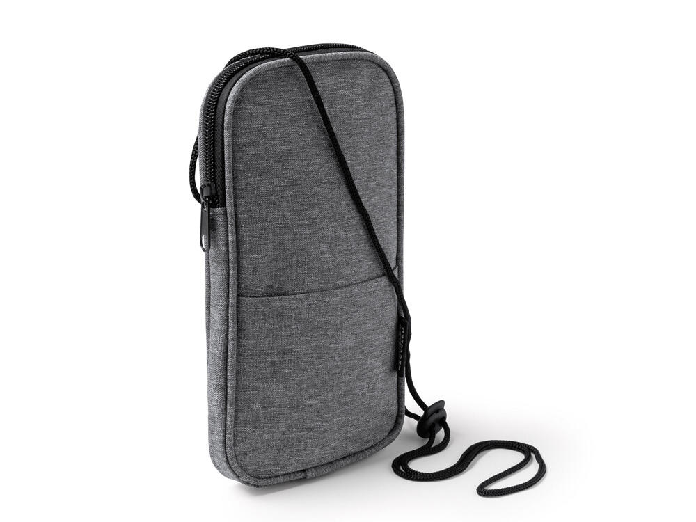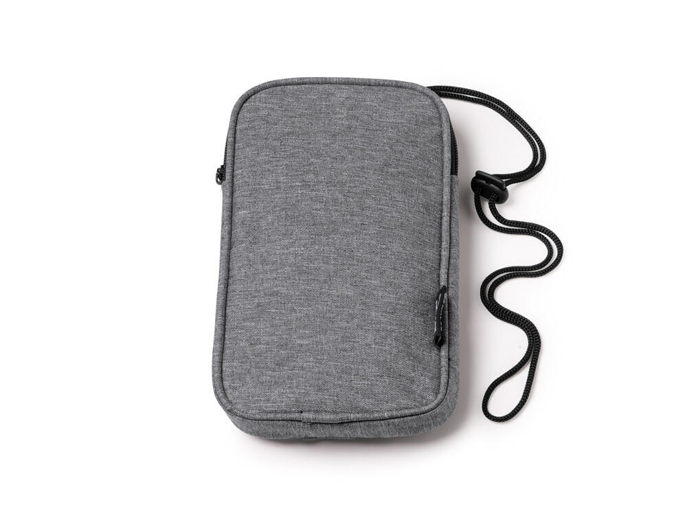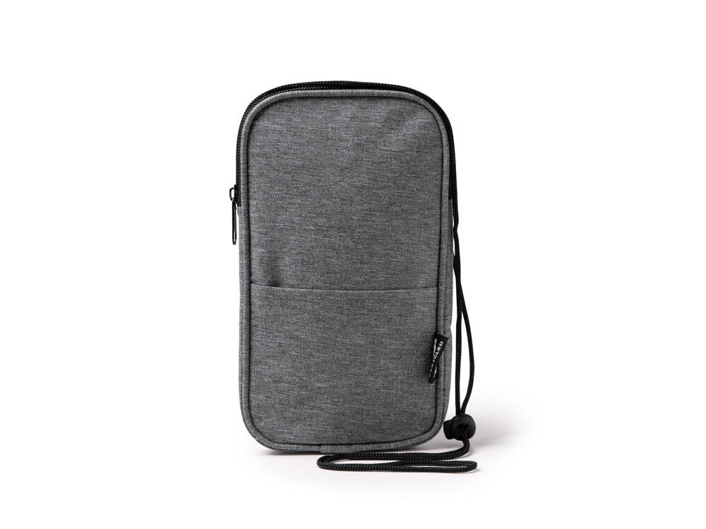 Мобильный чехол из полиэстера RPET. Основное отделение с застежкой-молнией. Внешний карман. В комплект входит шнурок для переноски. Длина шнурка 122 см.