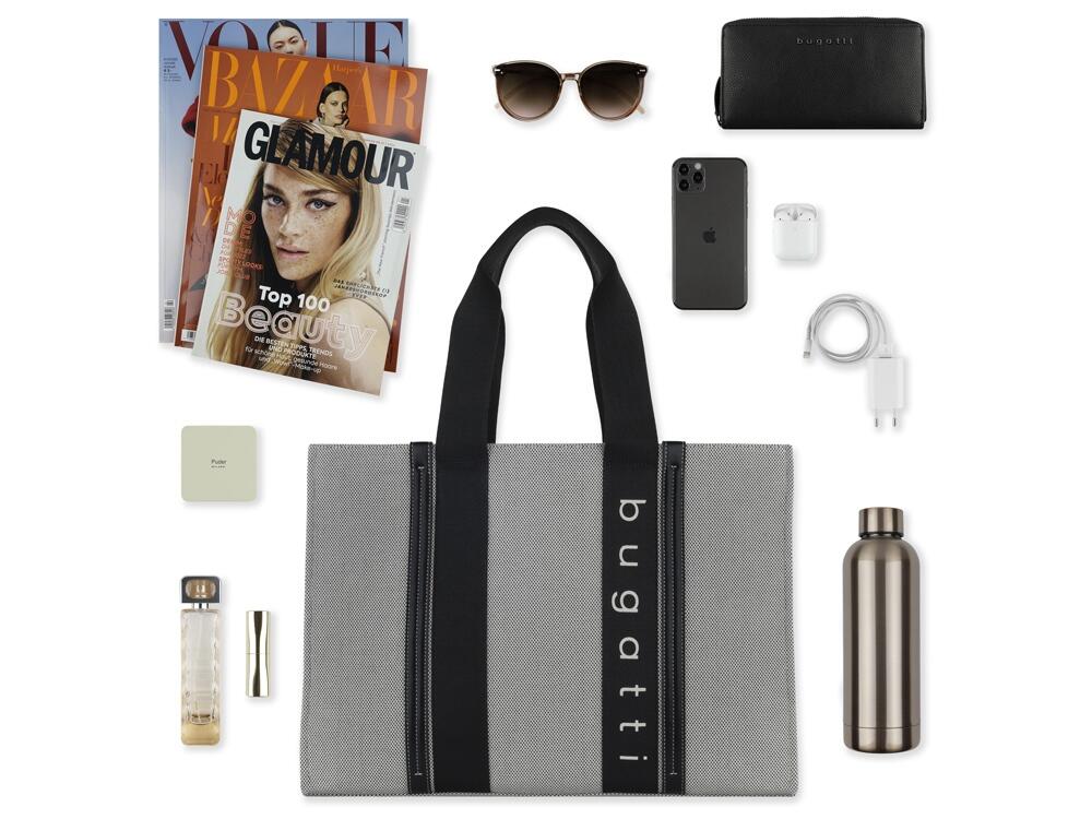Сумки-тоуты и шопперы, входящие в линейку, изготовлены из первоклассной плотной ткани «канвас» в сером и бежевом цветах. Логотип bugatti, контрастные ручки и детали из полиуретана идеально дополняют дизайн, подчеркивают выразительность и индивидуальность каждой модели. Сумки из коллекции AMBRA станут идеальным дополнением вашего образа. Позвольте себе быть очаровательными!