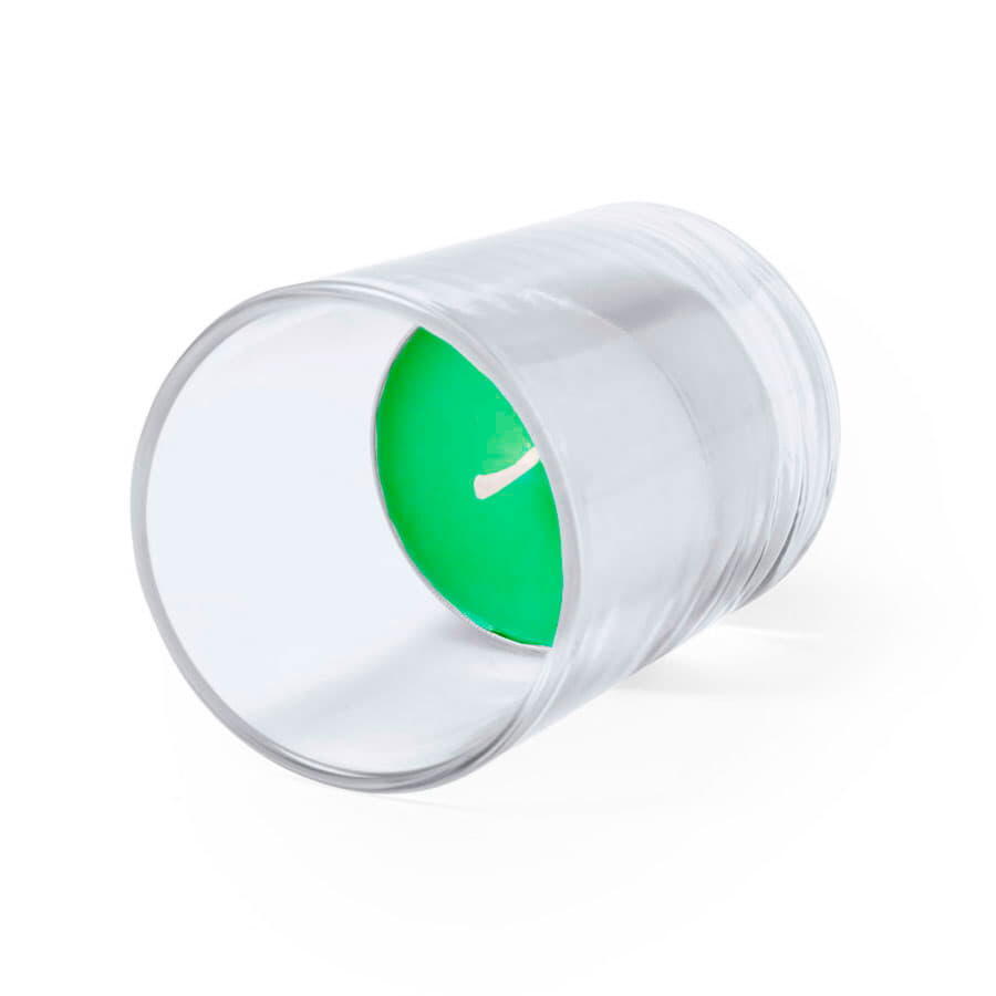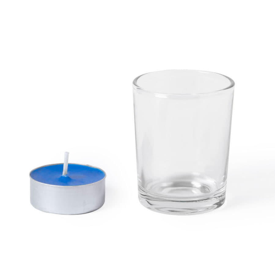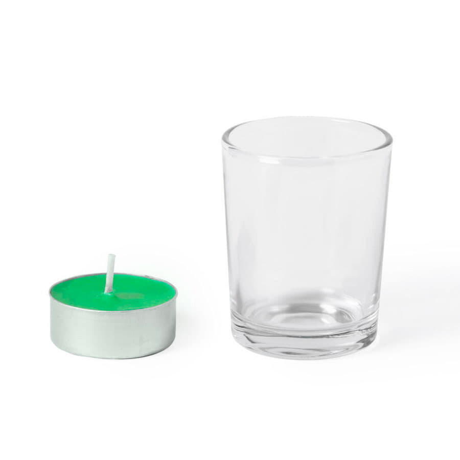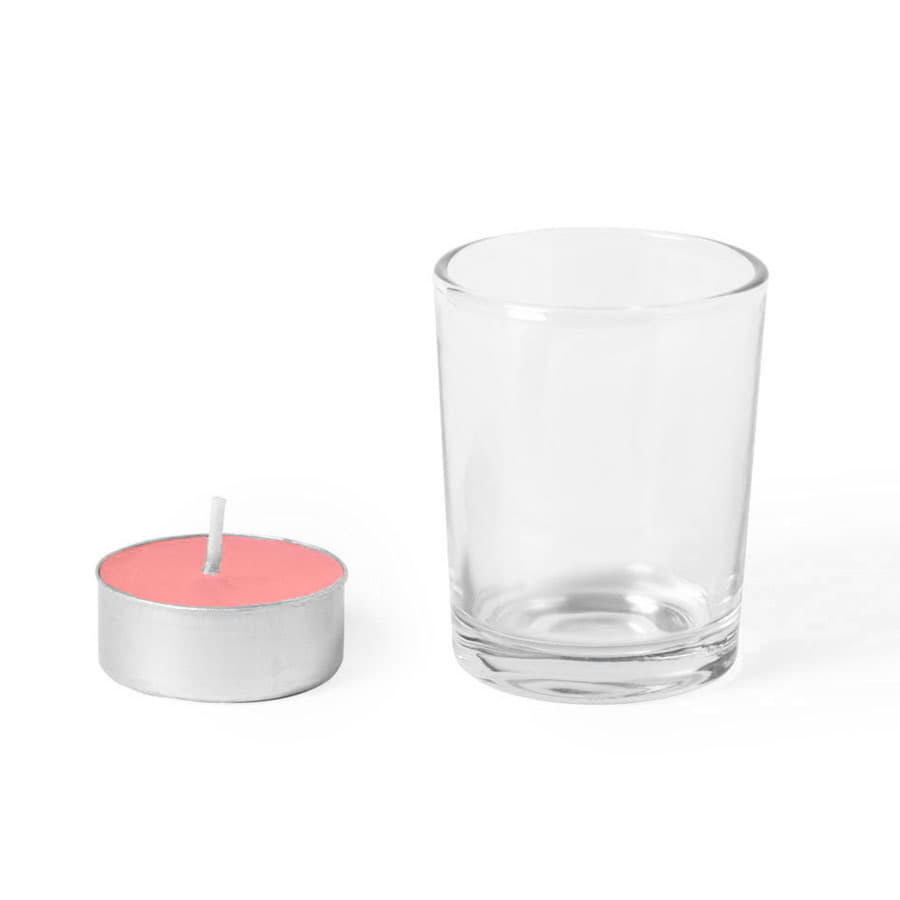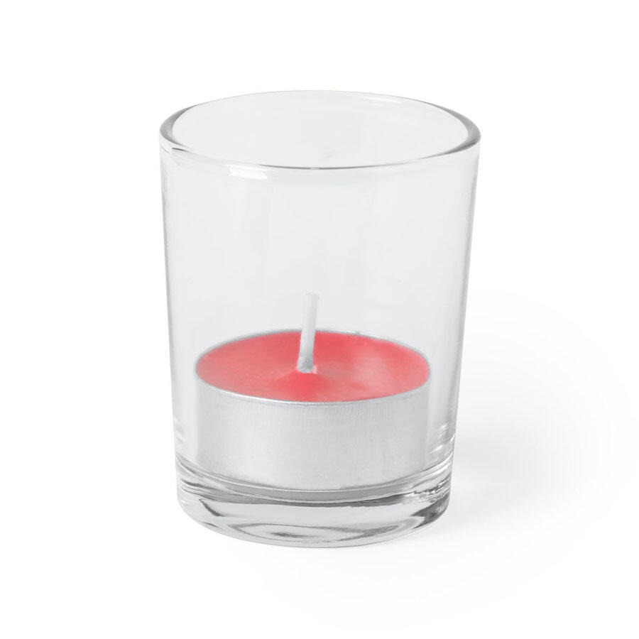 Свеча с ароматом ванили в стеклянном стаканчике.