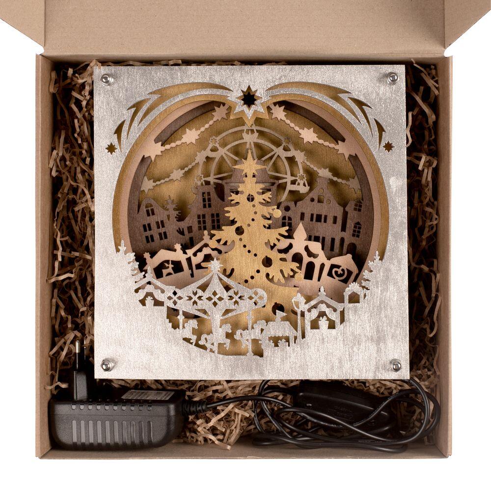 Ночник Merry Christmas с объемными резными изображениями создаст по-настоящему праздничное настроение и погрузит в сказочную атмосферу. В его многослойных очертаниях угадывается знакомый сюжет рождественской ярмарки — участником может стать любой фантазер! Поставляется в индивидуальной картонной коробке.