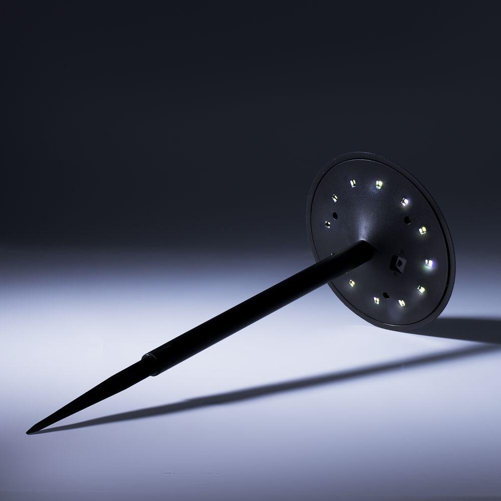 Светильник Ufology в лаконичном корпусе прекрасно подходит для освещения садовых дорожек, тропинок и декоративных элементов на газоне. Благодаря оригинальной конструкции плафона — в форме зонтика — глазам всегда будет комфортно в темноте — без яркого, бьющего света. Не требует замены батареек или зарядки аккумулятора, так как заряжается от солнечного света, и сложной установки — фонарик достаточно просто воткнуть в землю в любом удобном месте.