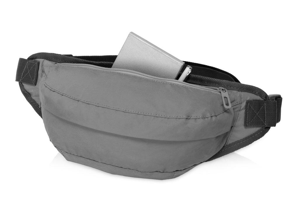 Вместительная поясная сумка увеличенного размера из светоотражающей ткани обеспечит дополнительную безопасность в темное время суток. Внутренний карман на молнии предназначен для хранения ценных вещей. Задняя часть сумки, прилегающая к телу, снабжена дышащей сеткой.