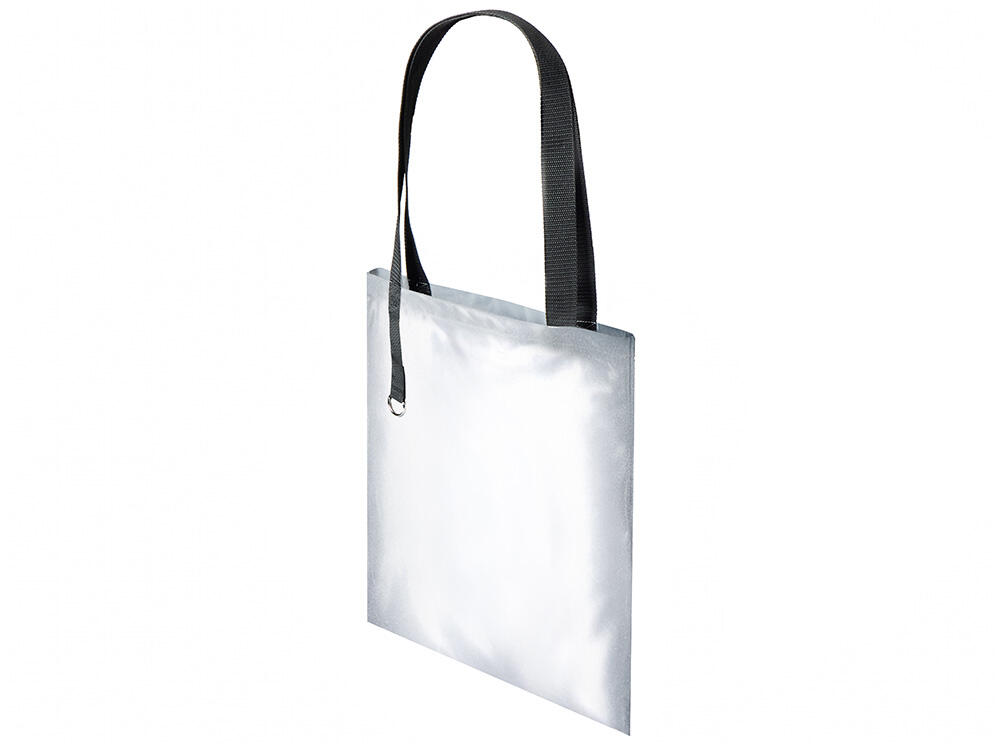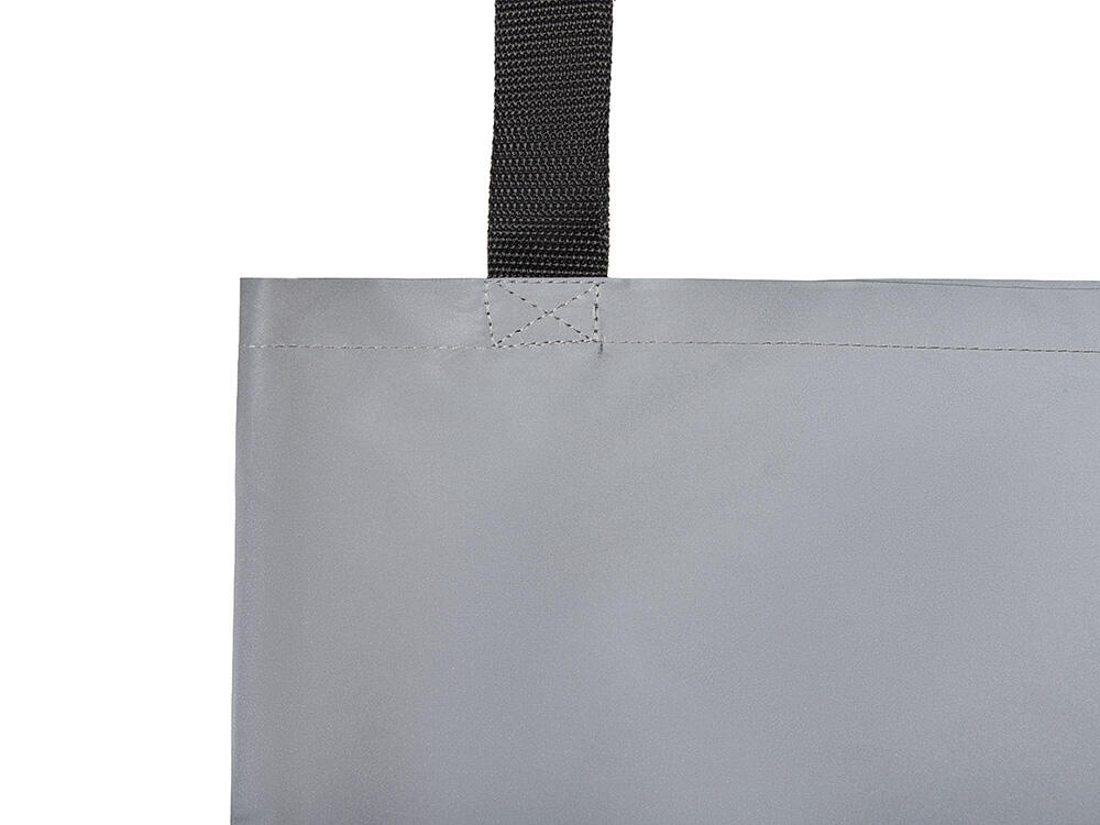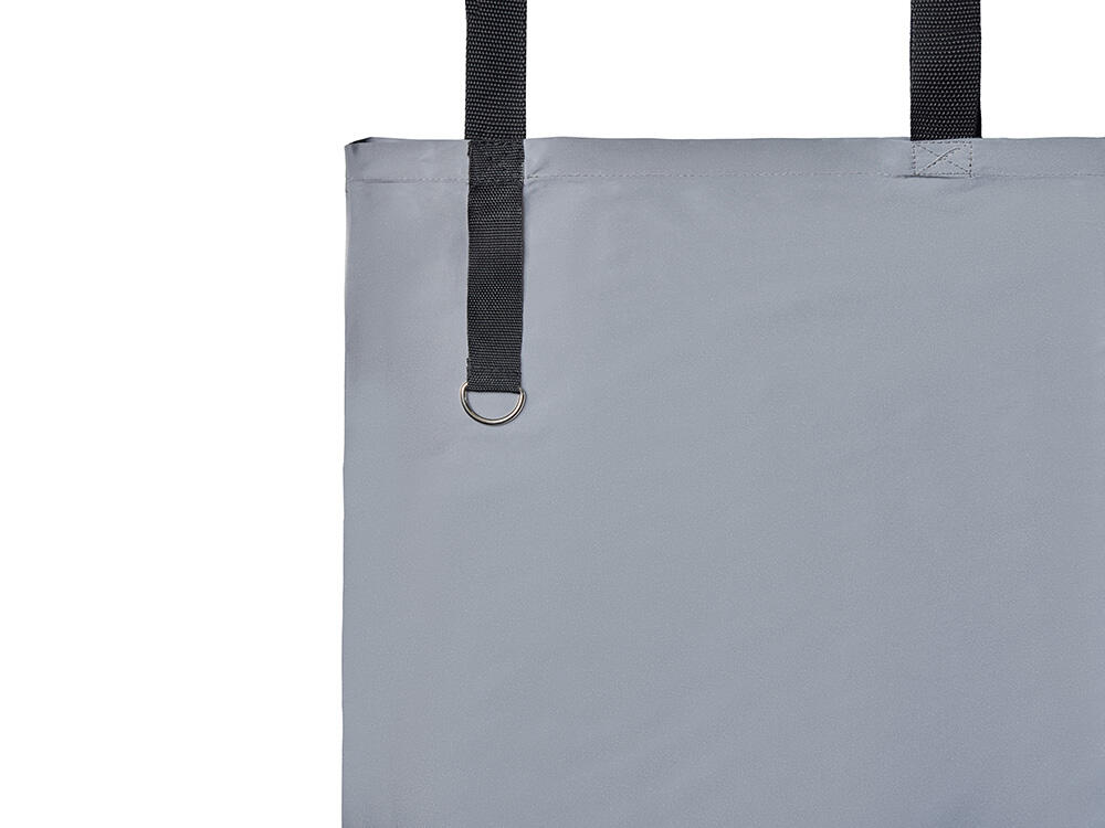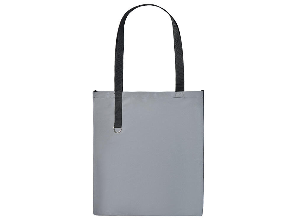 Сумка для покупок из светоотражающей ткани обеспечивает дополнительную защиту в темное время суток. Прочные ручки длиной 68 см. Металлическое д-кольцо на хлястике предусмотрено для крепления ремувок с вашим логотипом.