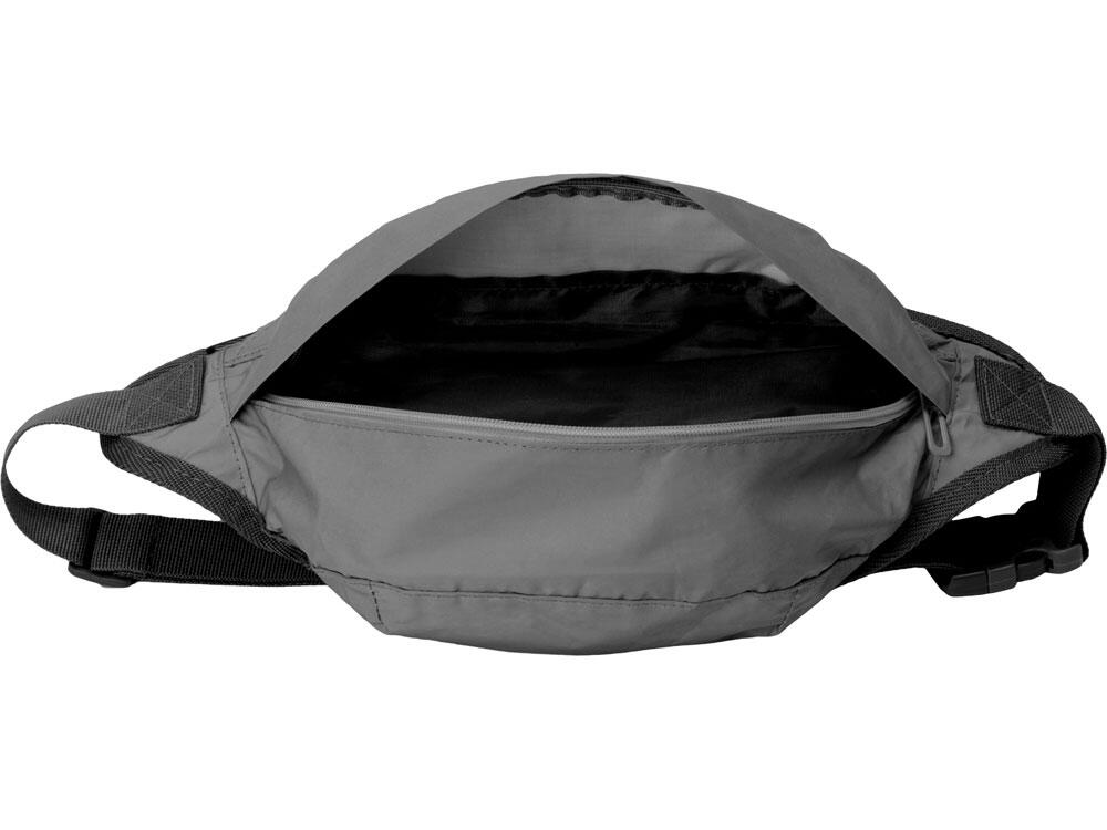 Вместительная поясная сумка увеличенного размера из светоотражающей ткани обеспечит дополнительную безопасность в темное время суток. Внутренний карман на молнии предназначен для хранения ценных вещей. Задняя часть сумки, прилегающая к телу, снабжена дышащей сеткой.