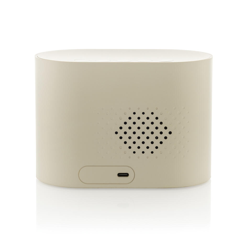Изделие изготовлено из переработанных материалов, сертифицированных по стандарту RCS (Recycled Claim Standard), который подтверждает содержание переработанного сырья на всех этапах производственной цепочки. Будильник на 58% состоит из переработанного пластика. Изделие и аксессуары не содержат ПВХ и упакованы в экологичную коробку FSC®. В комплект входит кабель USB A/USB C длиной 120 см из переработанного TPE.