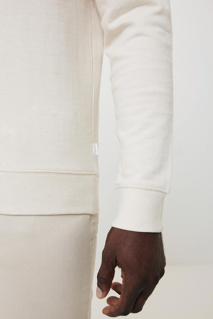Свитшот Iqoniq Denali из переработанного хлопка — еще более экологичный аналог нашей модели Zion. Главное отличие: при производстве был полностью исключен процесс окрашивания. За счет чего мы получаем цвет? Все благодаря использованию переработанного хлопка, который уже имеет определенный оттенок, после чего смешивается с первичным органическим. В результате получаем красивый меланжевый эффект. Внутри худи — флис с начесом для еще большего комфорта. Модель унисекс. Состав: 100% хлопок (50% переработанный и 50% органический). Плотность ткани 340 г/м². Изделие не содержит синтетических примесей, поэтому впоследствии может быть полностью переработано. Переработанный хлопок отличается неравномерной толщиной нитей. Поэтому в одежде можно увидеть небольшие вкрапления: это особенность материала. В одежде из неокрашенного хлопка также могут присутствовать более темные или светлые вкрапления — и это тоже особенность материала. При производстве ткани мы использовали технологию AWARE™, специальные маркерные частицы, позволяющие подтвердить подлинность переработанных материалов и гарантировать прозрачность всей цепочки поставок. Каждая этикетка Iqoniq содержит уникальный QR-код. Отсканируйте его с помощью своего смартфона, чтобы посмотреть цифровой паспорт изделия. Iqoniq — одежда, которой можно доверять.