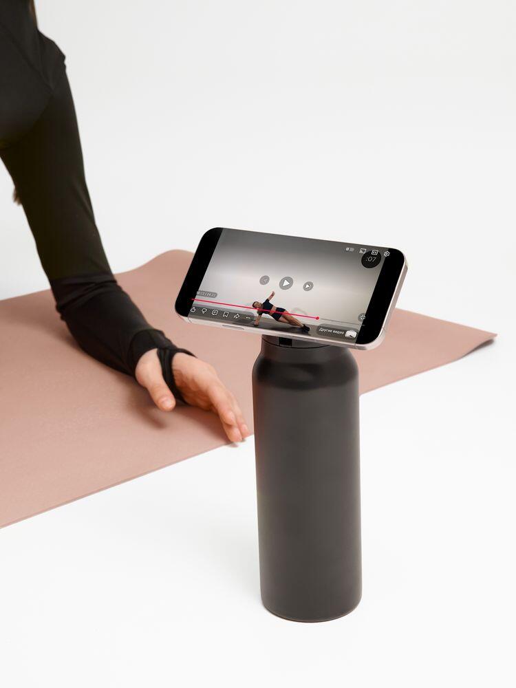 Главная особенность Magnus — магнитное кольцо в крышке, которое превращает бутылку в функциональный гаджет. Оно позволяет закрепить смартфон прямо на бутылку, чтобы смотреть тренировочные видео, повторять упражнения, снимать контент или использовать навигацию. Не нужно искать опору или держать телефон в руках — все уже продумано.