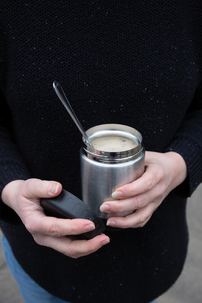 Герметичный вакуумный контейнер для еды сохранит температуру горячих блюд до 5 часов, холодных – до 15 часов. Внутренняя стенка выполнена из нержавеющей стали марки 304, внешняя – из нержавеющей стали марки 201. Объем: 300 мл.