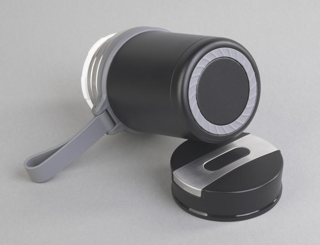 Конструкция термоса оптимальна для повседневного использования. Любителям домашней еды определенно понравится удобная ручка для переноса, складная ложка, которая идет в комплекте, и - практичное износостойкое покрытие. Специальная порошковая краска не только защищает термос от механических повреждений, но и проста в уходе. Зернистая фактура поверхности отлично маскирует отпечатки пальцев.