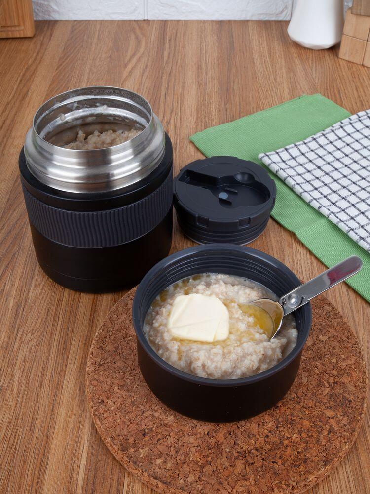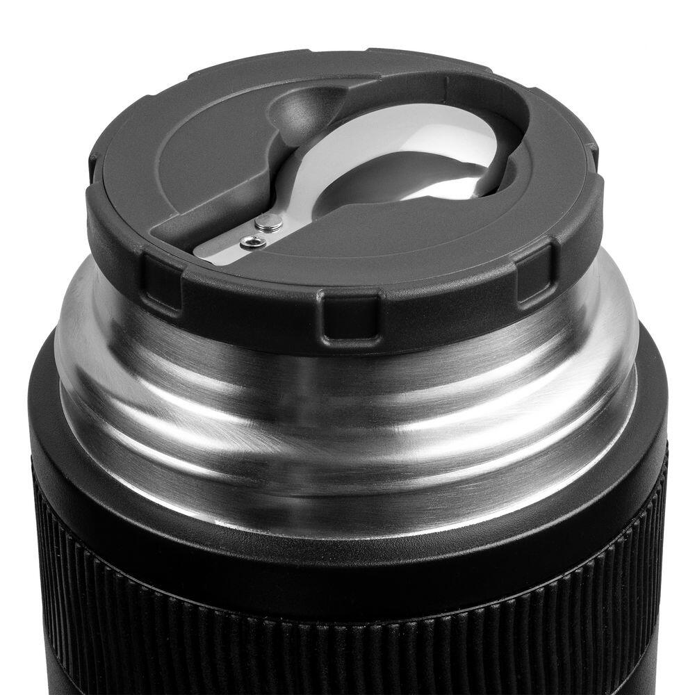 Емкость 500 мл. Складная ложка в комплекте. Двухслойная вакуумная конструкция из нержавеющей стали с завинчивающейся пробкой с клапаном. Благодаря встроенному в крышку клапану сброса давления термос открывается легко и безопасно.