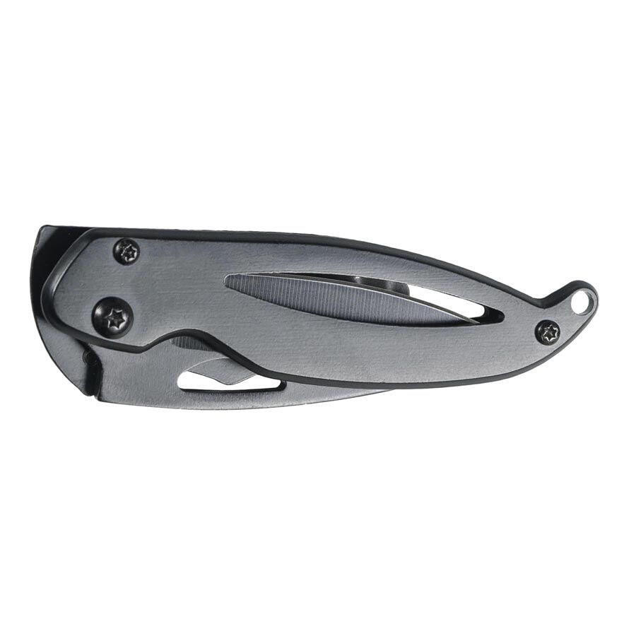 Высококачественный нож с лезвием из темной нержавеющей стали и ручкой из нержавеющей стали с замком безопасности. Предохранительный замок в комплекте Поставляются в отдельных коробках. Материал: Алюминий/Нержавеющая сталь