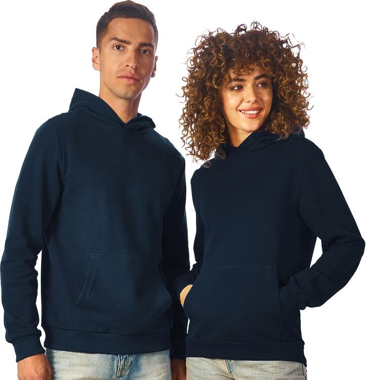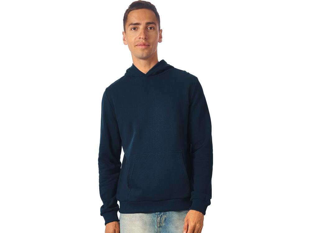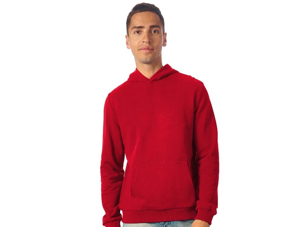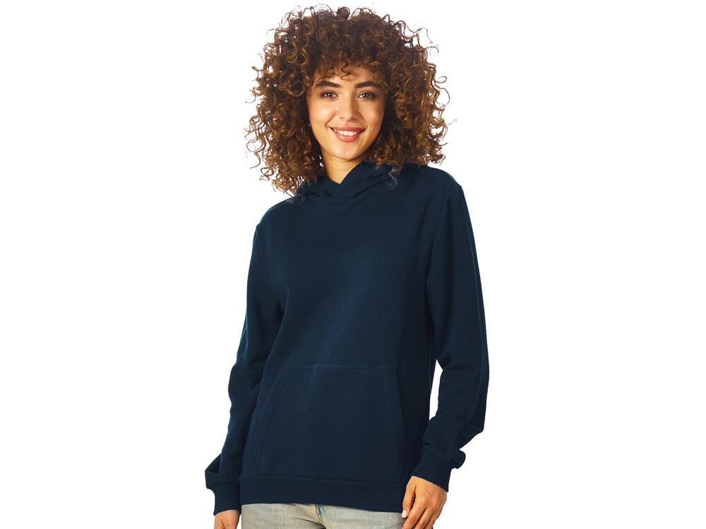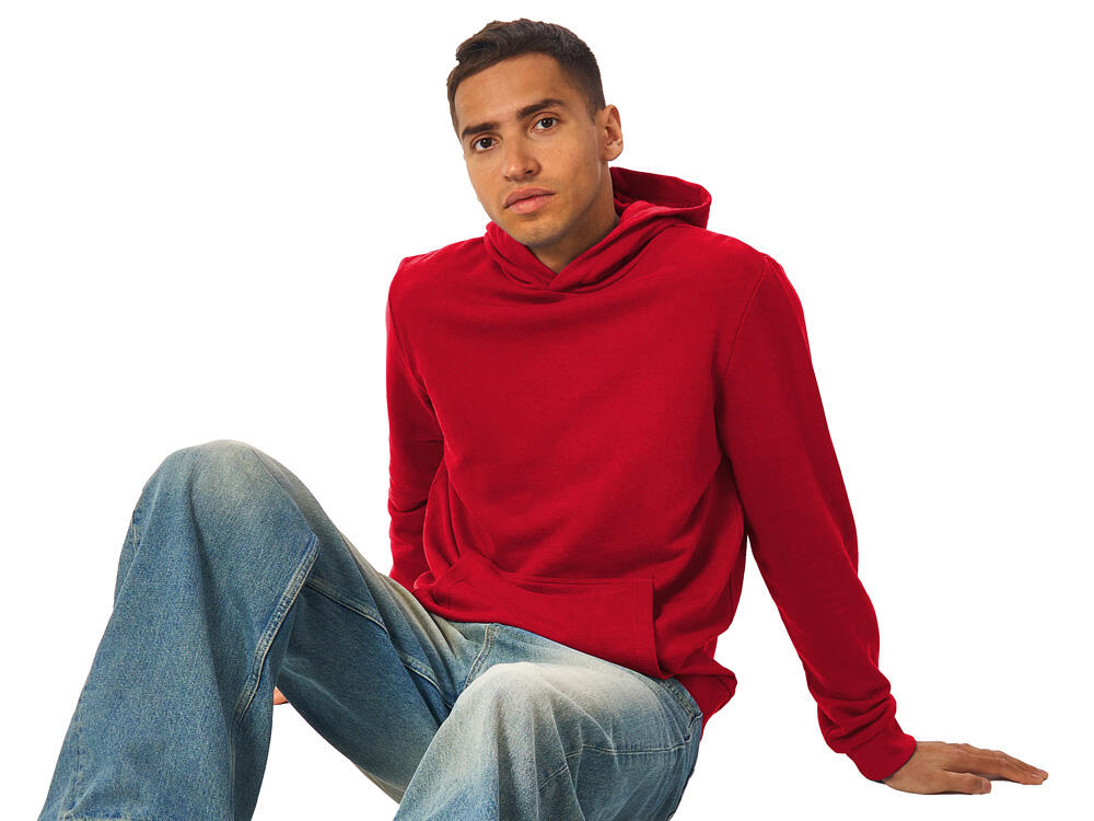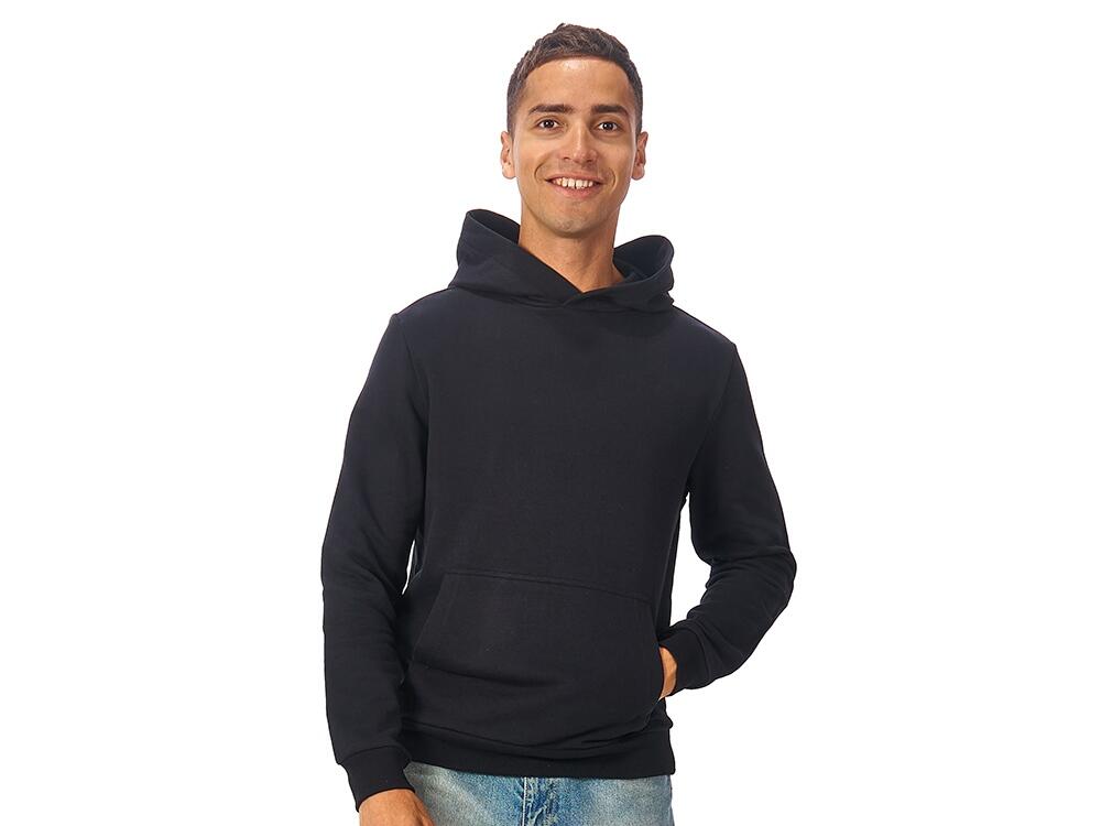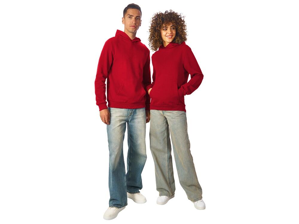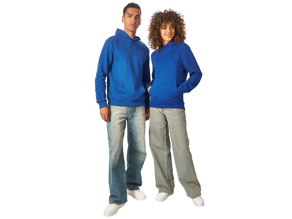 Толстовка с капюшоном (худи) из плотного хлопкового 3х ниточного футера. В капюшоне подкладка в тон, а горловина спинки дополнительно укреплена тесьмой с выделкой «елочка». Капюшон без шнурков – ничего не отвлекает от вашего брендирования. Манжеты и низ изделия отделаны рибом 2х2. Глубокий комфортный карман кенгуру на полочке. Полотно из утяжеленного хлопкового футера внутри с петельками без начеса.