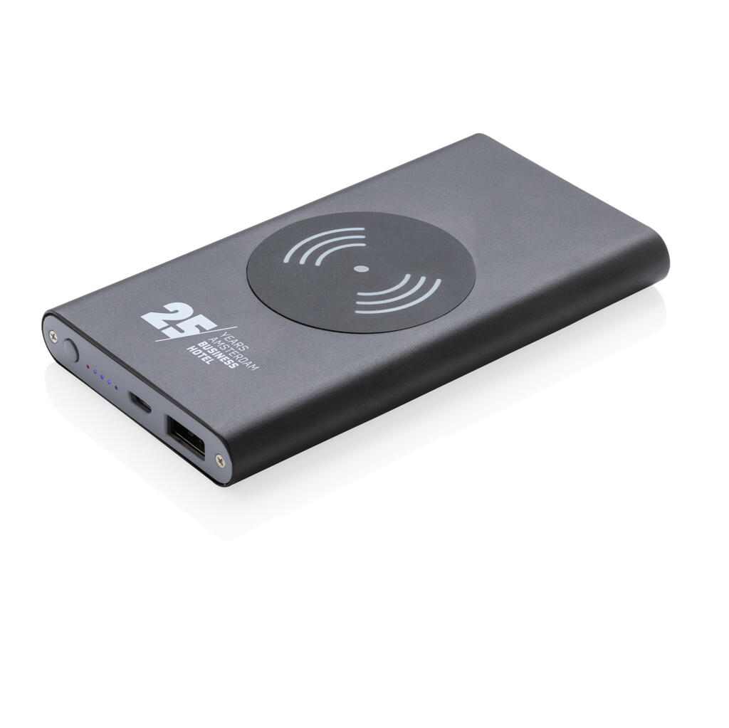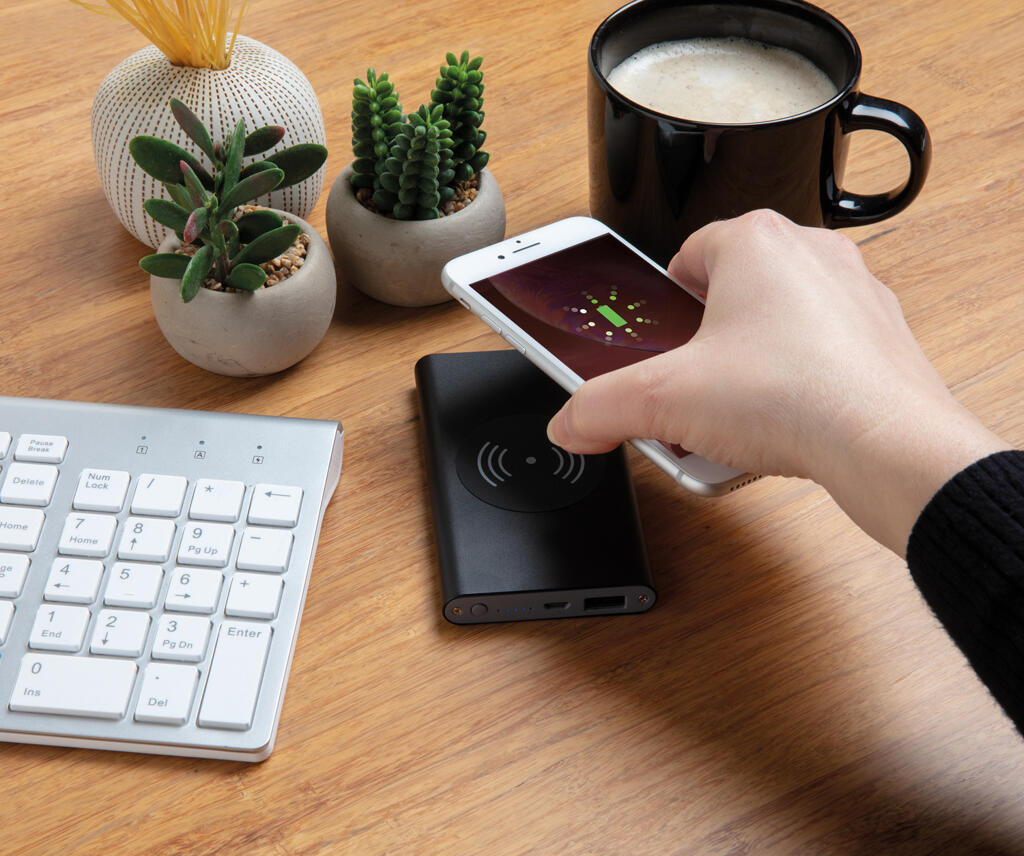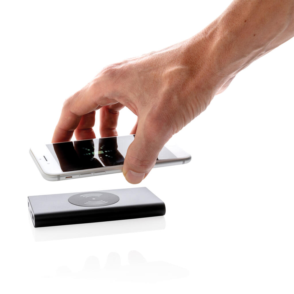 Тонкий беспроводной внешний аккумулятор 5W со встроенной литиево-полимерной батареей на 4 000 мАч изготовлен в стильном и надежном алюминиевом корпусе.