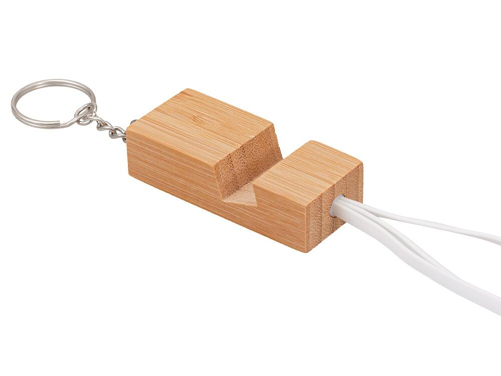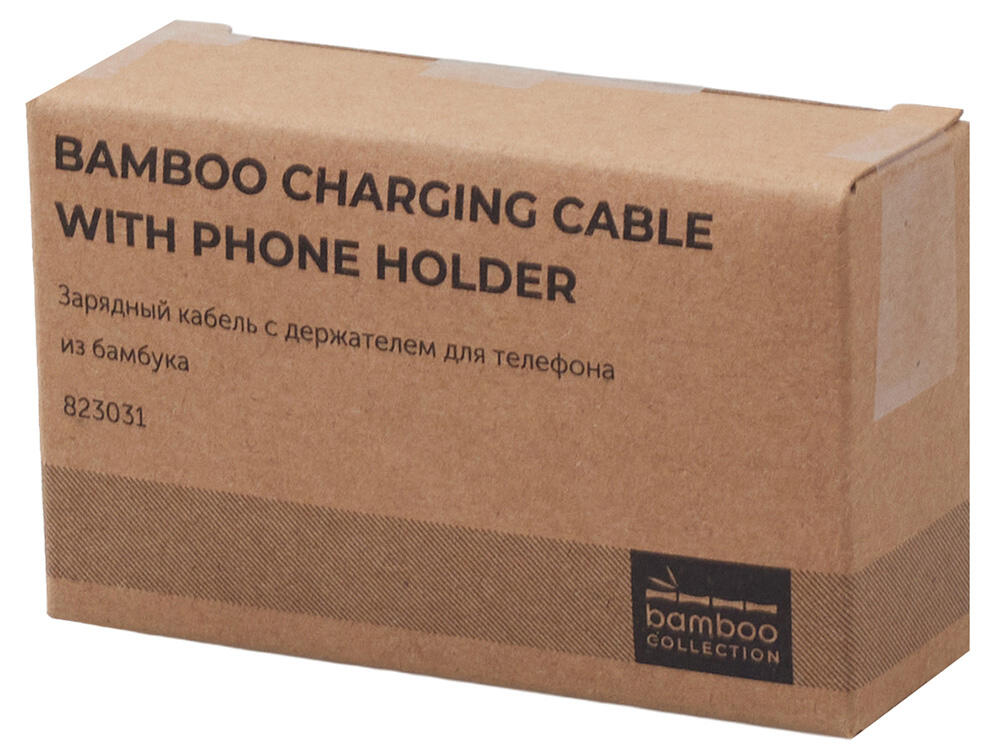 Корпус кабеля выполнен из натурального бамбука — экологически чистого и прочного материала. Деревянная подставка не только защищает кабель от перегибов, но и служит удобной опорой для телефона при видеозвонках, прослушивании музыки или просмотре видео.