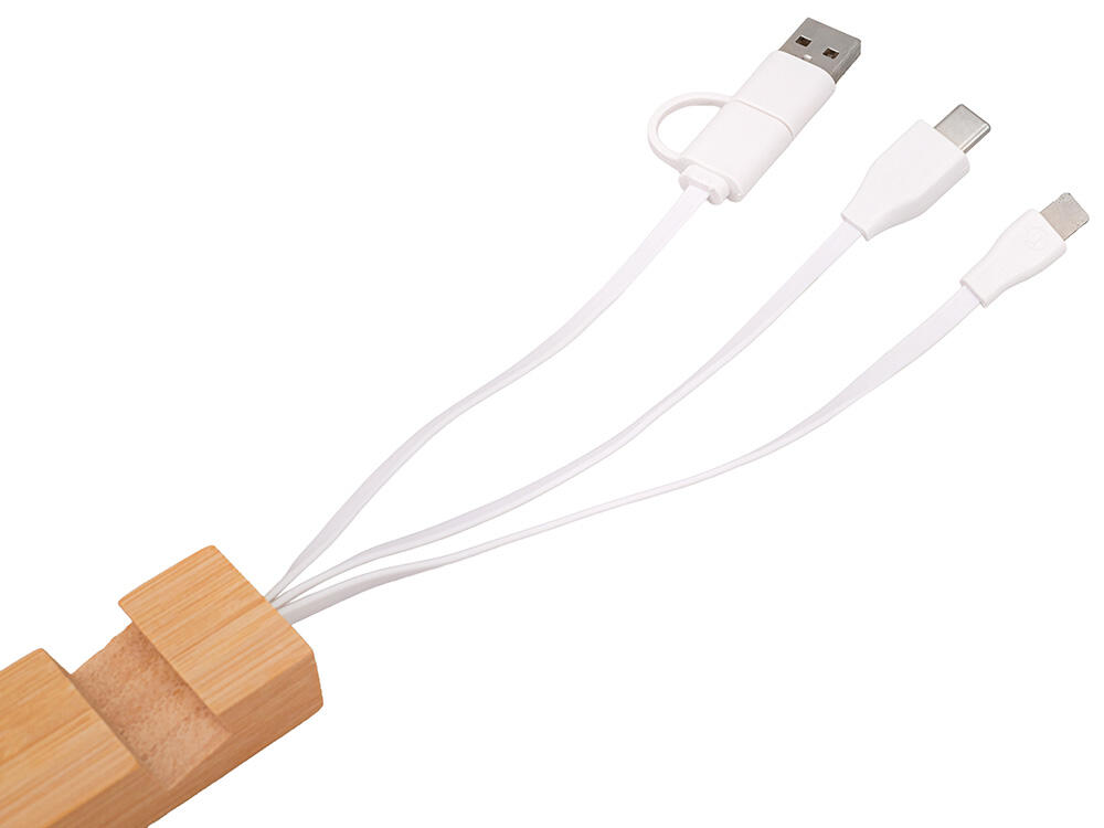 Универсальный кабель с подставкой 4-в-1 «Unicable» — стильное и практичное решение для современного пользователя. Этот компактный аксессуар станет незаменимым спутником в вашем кармане, сумке или на рабочем столе. Поставляется в фирменной коробке bamboo collection.