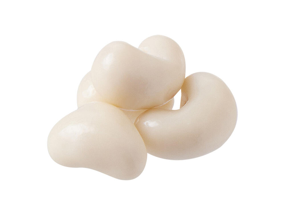 Кешью в нежной белой глазури предлагает мягкий сливочный вкус с лёгкой сладкой ноткой. Кешью содержит магний, белок и антиоксиданты, помогает поддерживать тонус и заряд бодрости, что делает его отличным перекусом