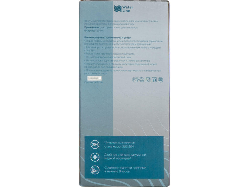 Герметичный термостакан с завинчивающейся крышкой. Двустенная конструкция из нержавеющей стали с вакуумной изоляцией. Сохраняет напитки горячими в течение 8 часов и холодными в течение 24 часов. Объем составляет 450 мл.