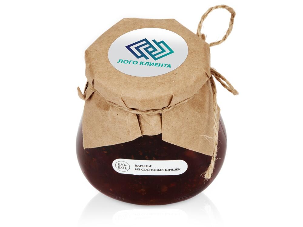 Банка варенья обернута крафт-бумагой, на которую возможно сделать нанесение корпоративного логотипа.