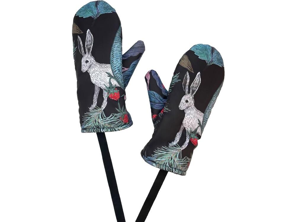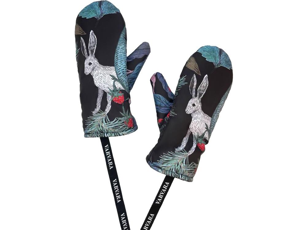 Утепленные варежки с принтом "Зайцы".